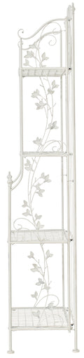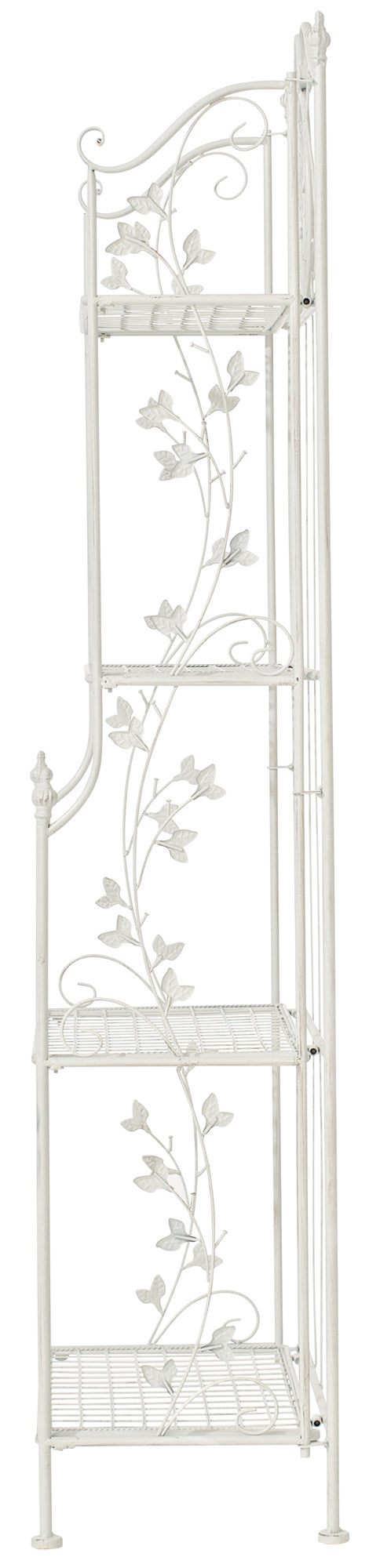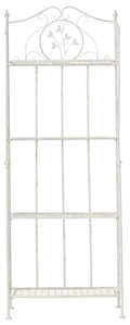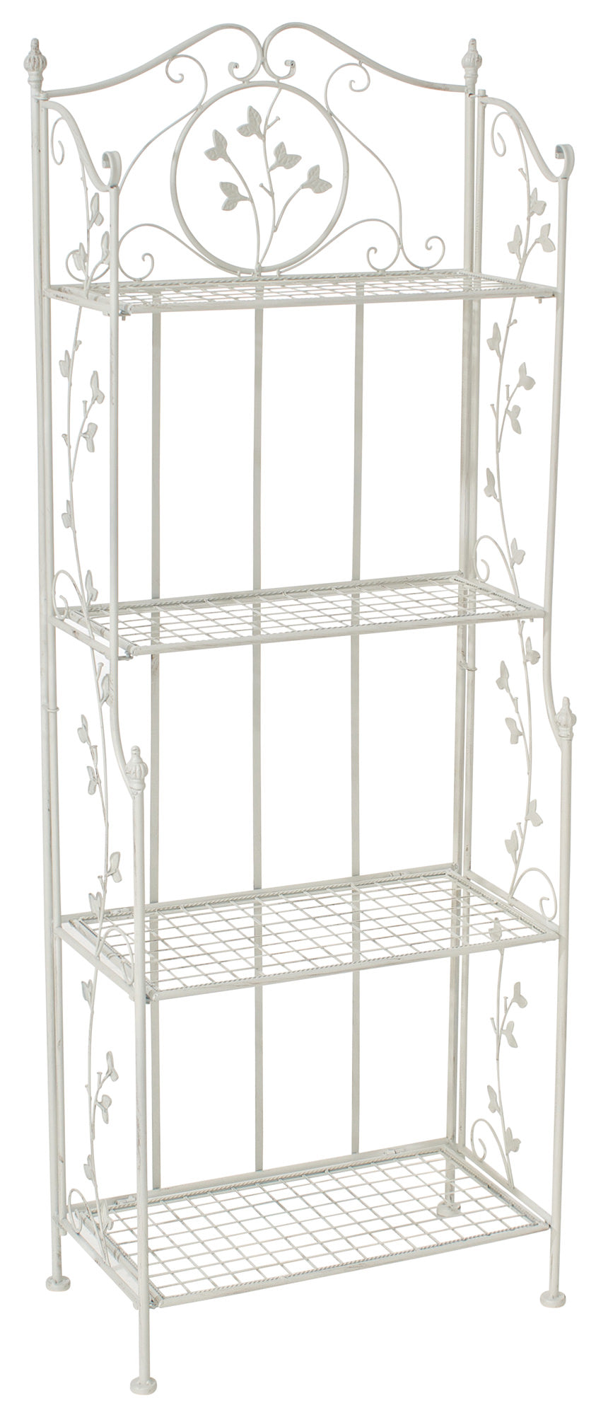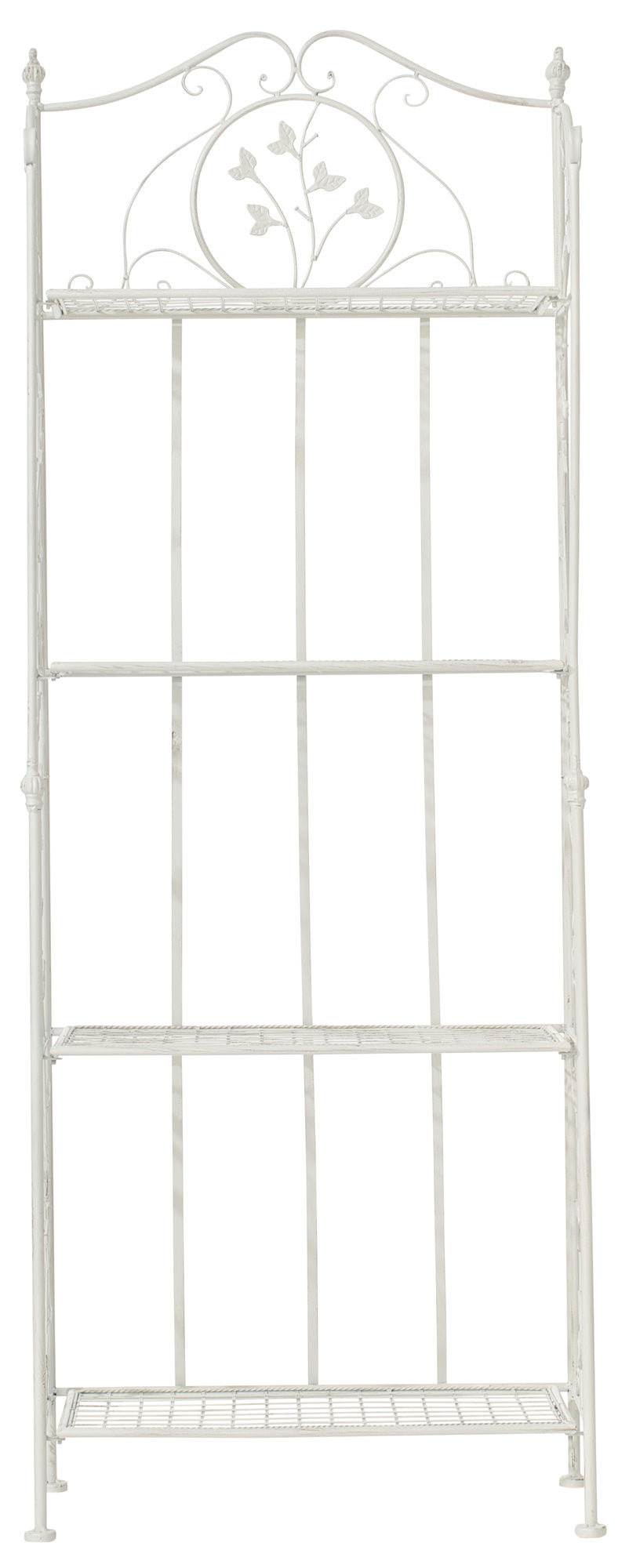 Denna vägghylla ger en romantisk touch till alla rum. Förvaringsstället är utsmyckat med många dekorativa detaljer och är, trots sitt delikata utseende, mycket stabilt och hållbart. Det är tillverkat av högkvalitativa järnrör, som också är pulverlackerade för extra kvalitet. Den hopfällbara hyllan erbjuder flexibilitet: den kan fällas ihop vid behov för enkel förvaring och transport. Produkten levereras i sin originalförpackning och är enkel att montera.