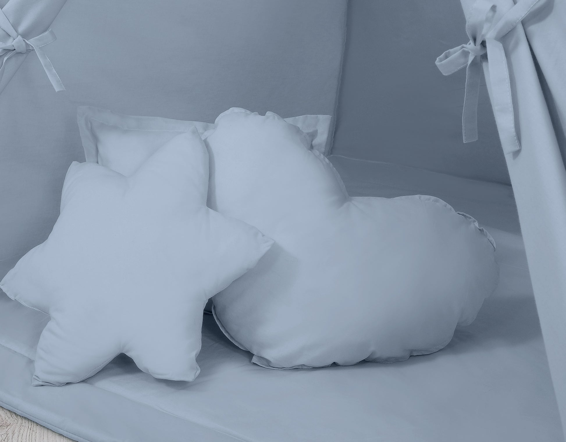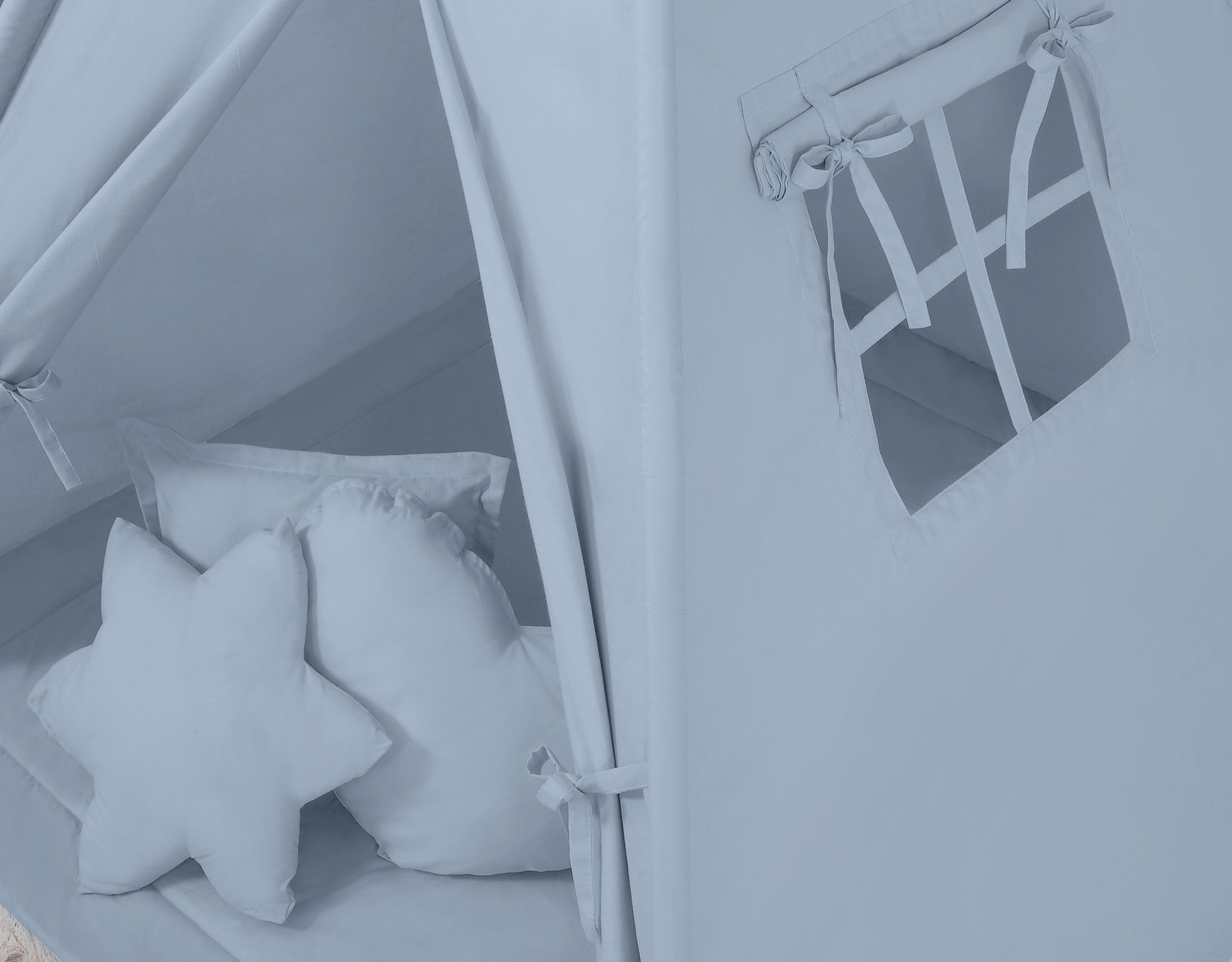 Pastellblått tipitält - lektält - inkl. lekmatta, kuddar och tvättbart överdrag