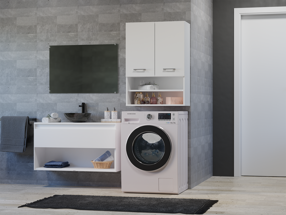 Hangkast/Badenkamerplank Pola Mini DK – Mat Wit, voor boven de wasmachine