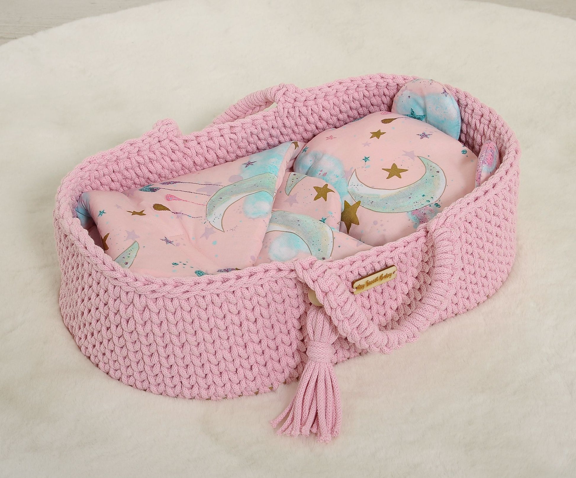 En vacker dockfilt, perfekt för barnvagnen, spjälsängen eller korgen. Denna miniatyrfilt är tillverkad av samma högkvalitativa hantverk och certifierade material som riktiga babyprodukter. Ha timmar av skoj med dina dockor! 100 % handgjord i Polen.