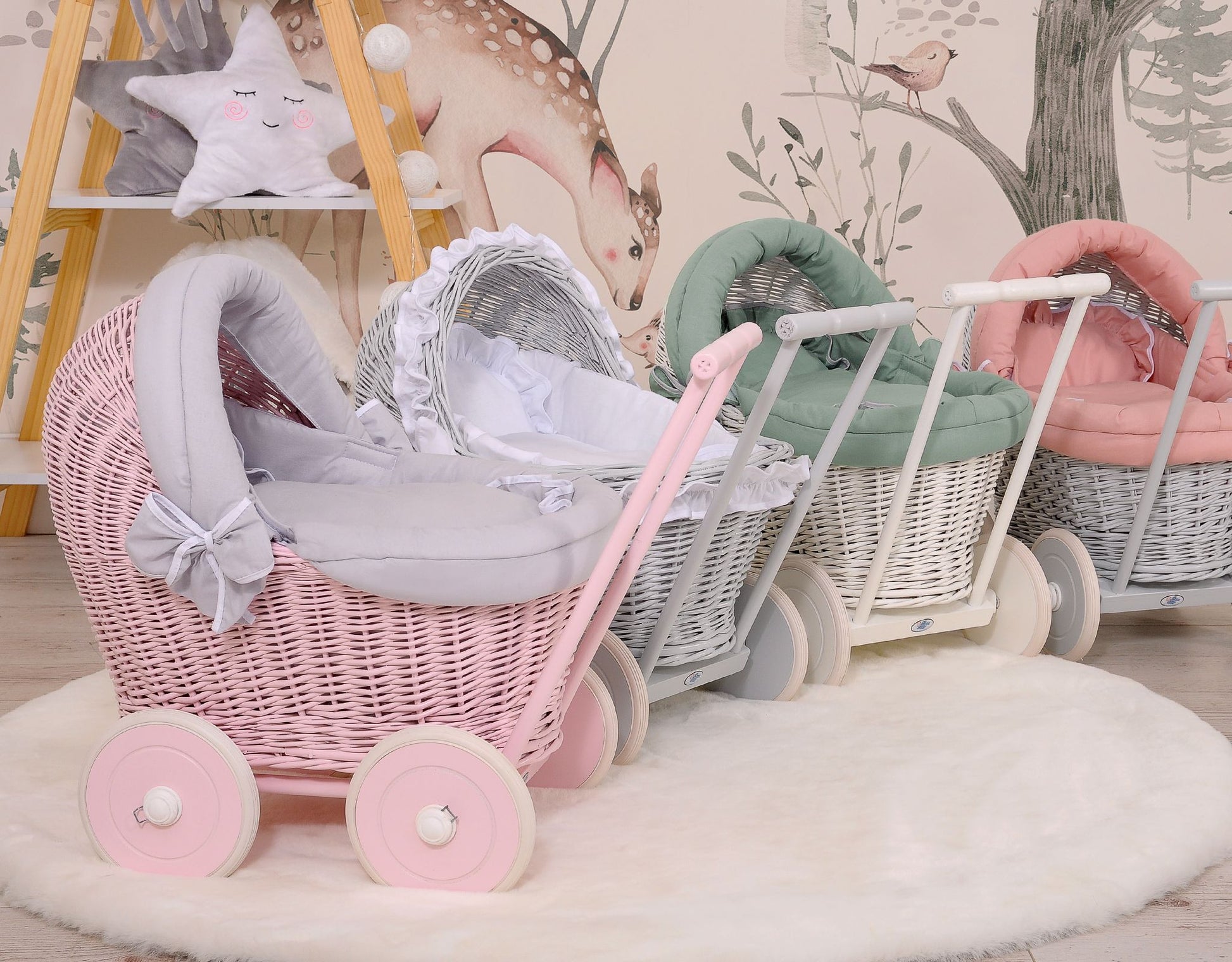 Dockvagn i rotting - dockvagn - handgjord och mjukt fodrad för säker och bekväm lek