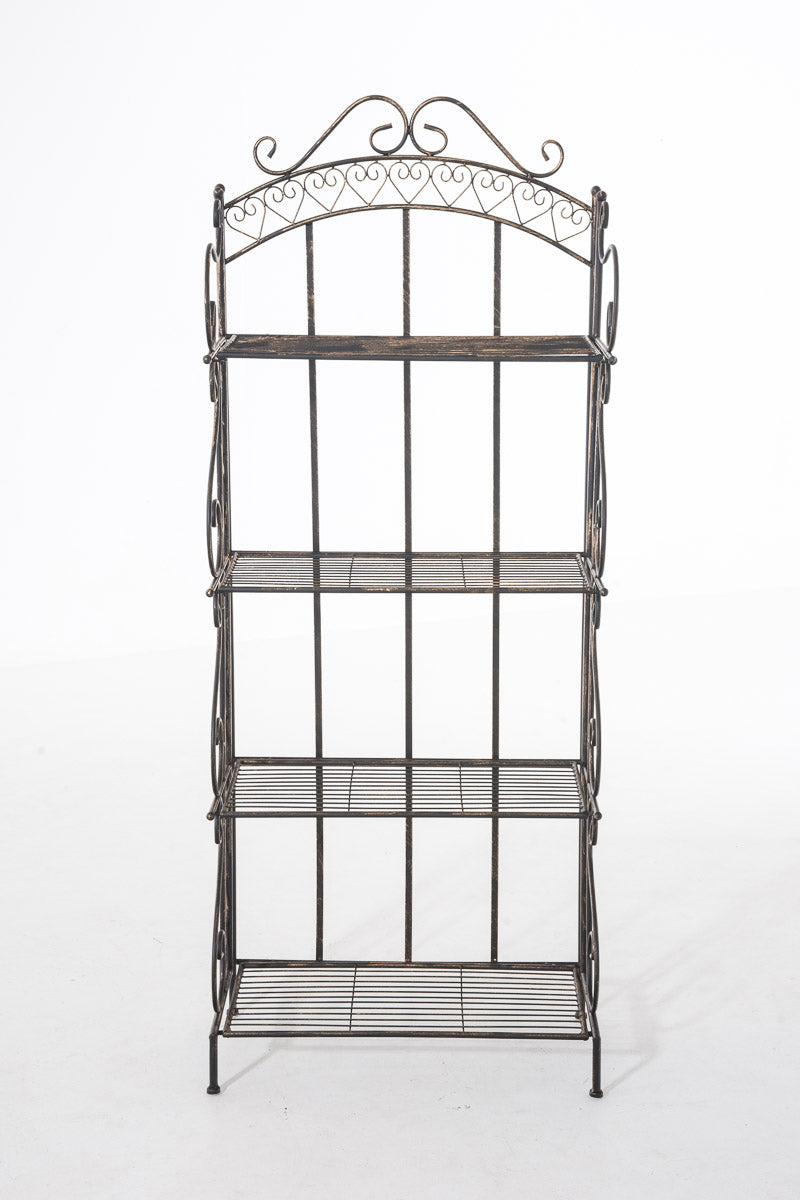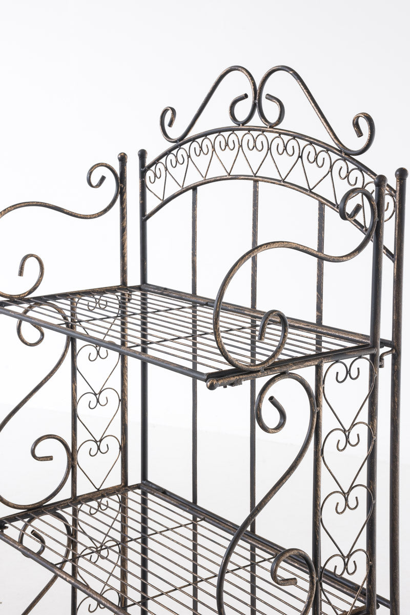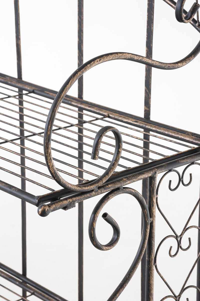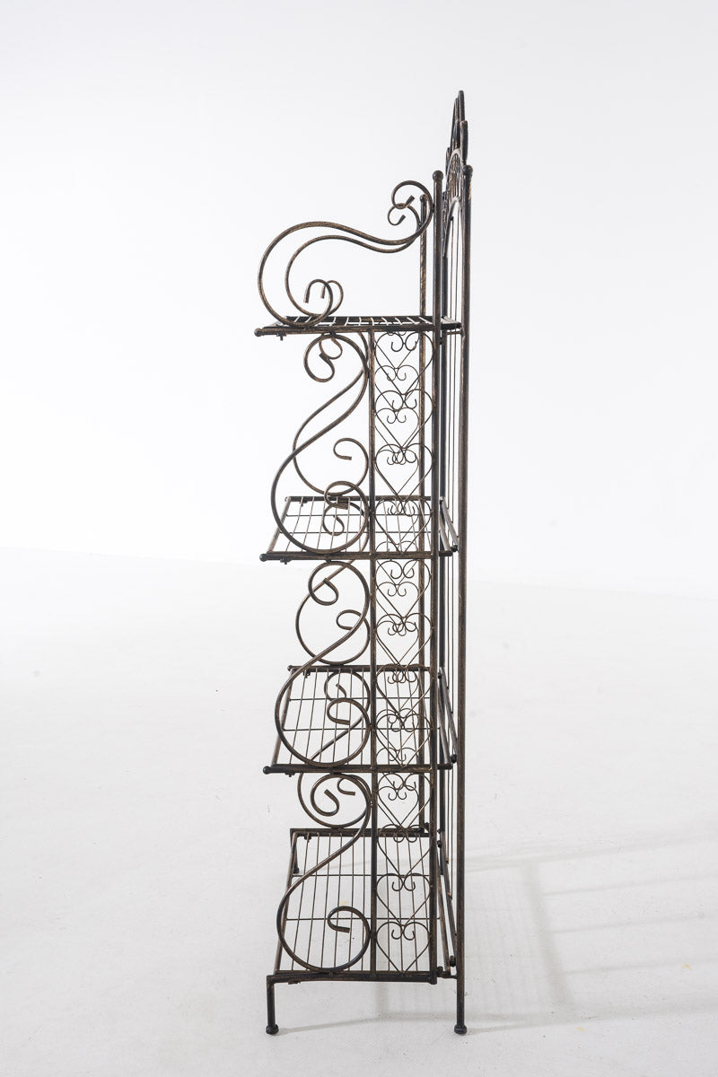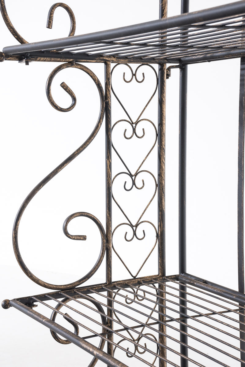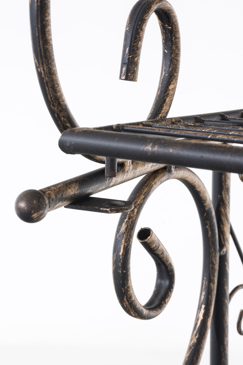 Denna modell är tillverkad av extremt tjocka och robusta metallrör, inte tunn stålplåt. Kvaliteten är utmärkt och den består av endast ett fåtal delar, vilket gör den mycket stabil. En pulverlackering ger detta ställ en mycket hög kvalitet och gör det exceptionellt hållbart. De vackra rustika dekorationerna ser attraktiva ut och ger det ett antikt utseende. Stället kan fällas ihop vid behov.
