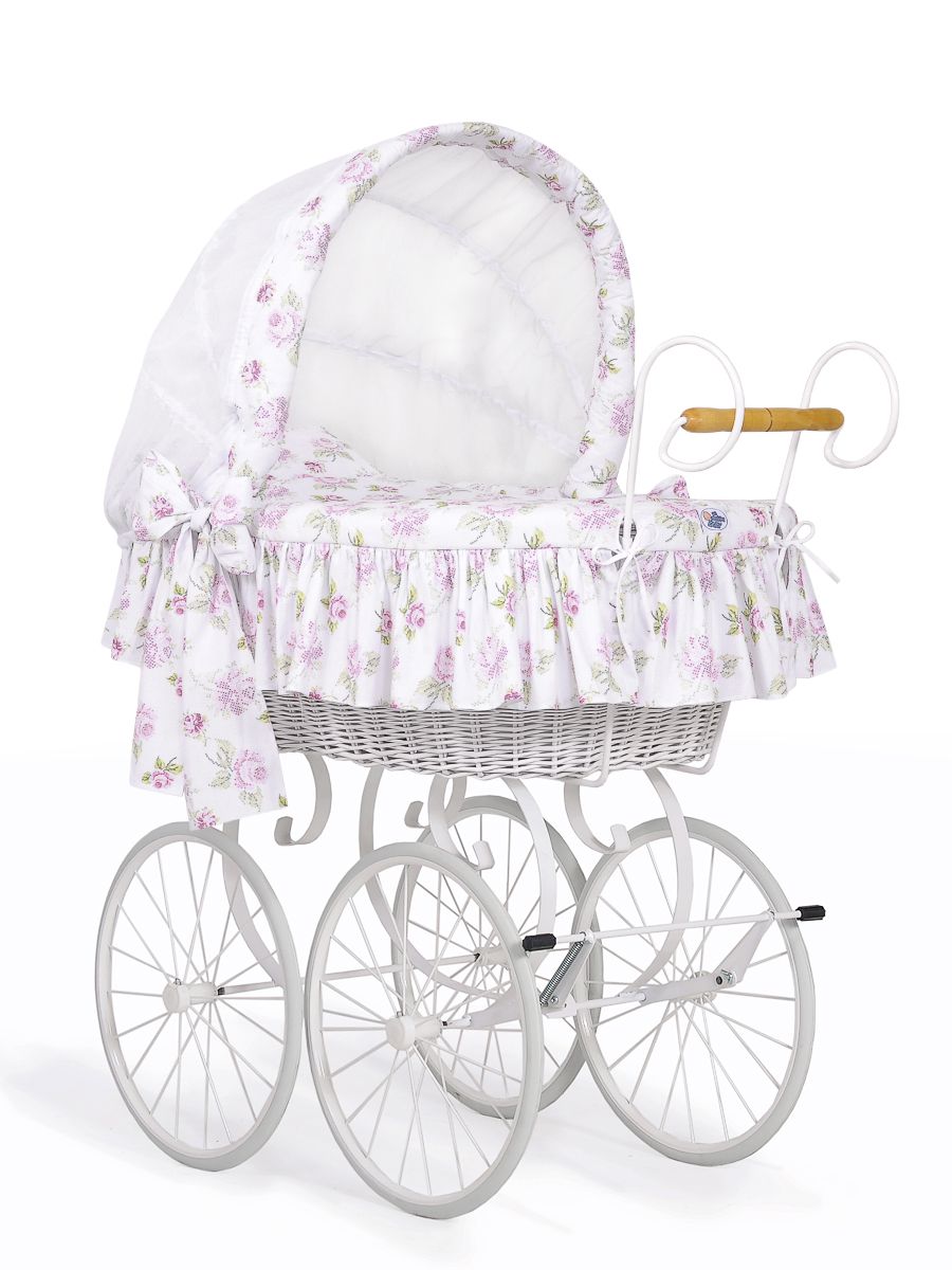 - Handvävd vit rottingvagga med justerbar huva