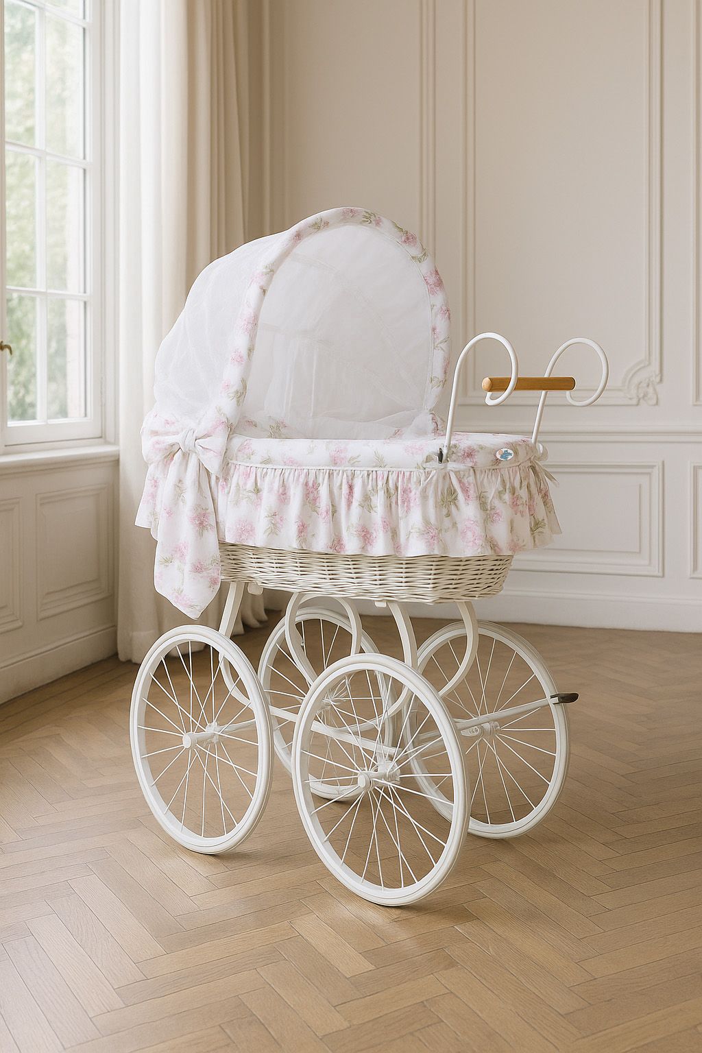 Elegant och trygg sömn för din lilla med denna handgjorda retro-spjälsäng på ett elegant metallchassi. BellaFurn Baby Basket från MY-SWEET-BABY Luxury kombinerar traditionellt hantverk med modern funktionalitet, med omsorg om varje detalj.