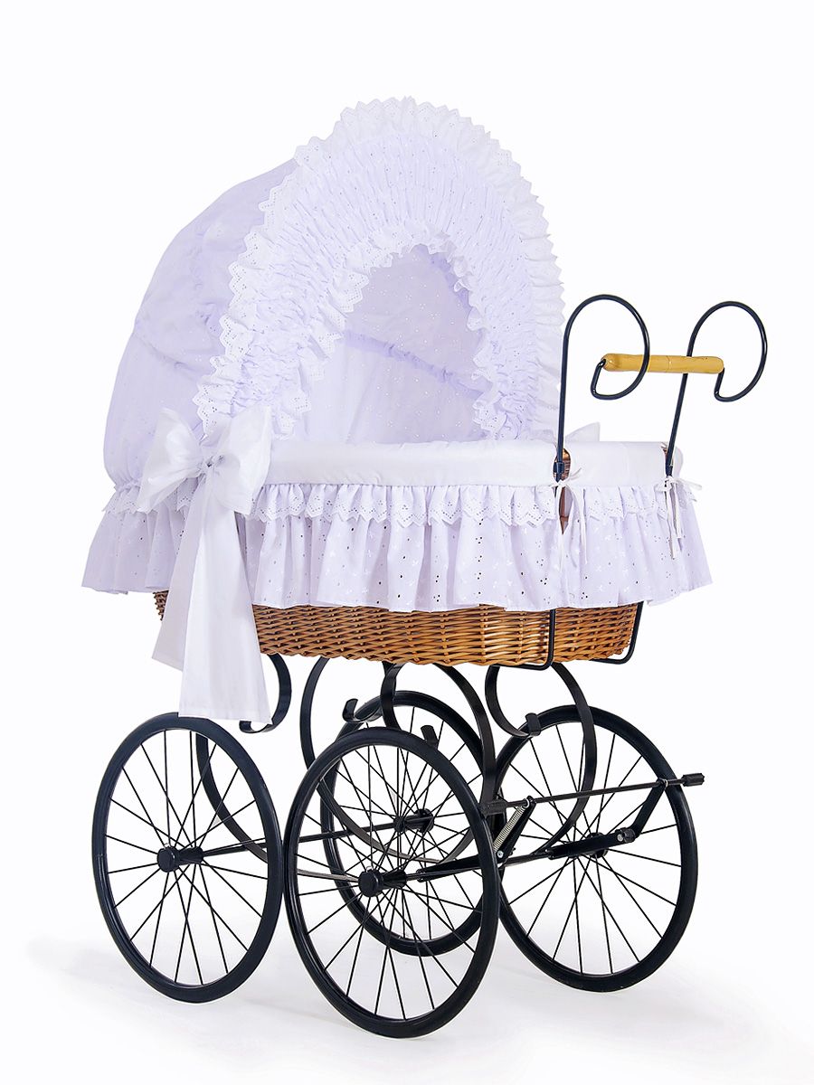 Retro Charlotte spjälsängskorg - rottingbas - smidigt rullande med gummihjul