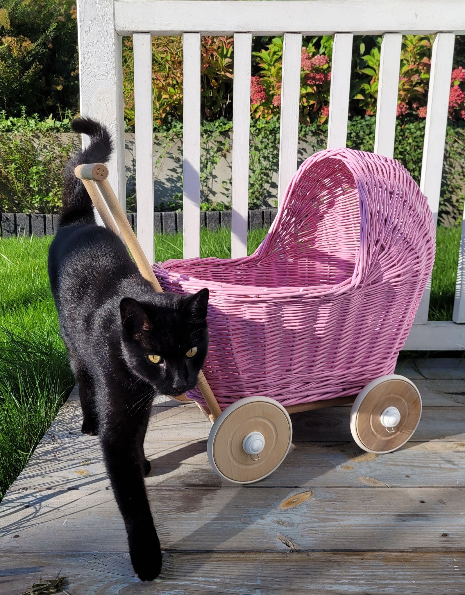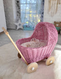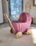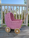 Dockvagn i rotting - handvävd dockvagn - naturlig rotting, stabilt trächassi