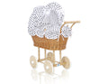 Dockvagn i rotting - lekvagn - ekologiskt bokträ, gummihjul, med docksängkläder