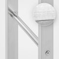 För att förhindra att träet faller ut finns tre tvärbalkar placerade på varje sida. Dessa ger också extra stabilitet åt hyllan. Dessutom har hyllan fyra höjdjusterbara golvskydd för att kompensera för ojämna ytor.