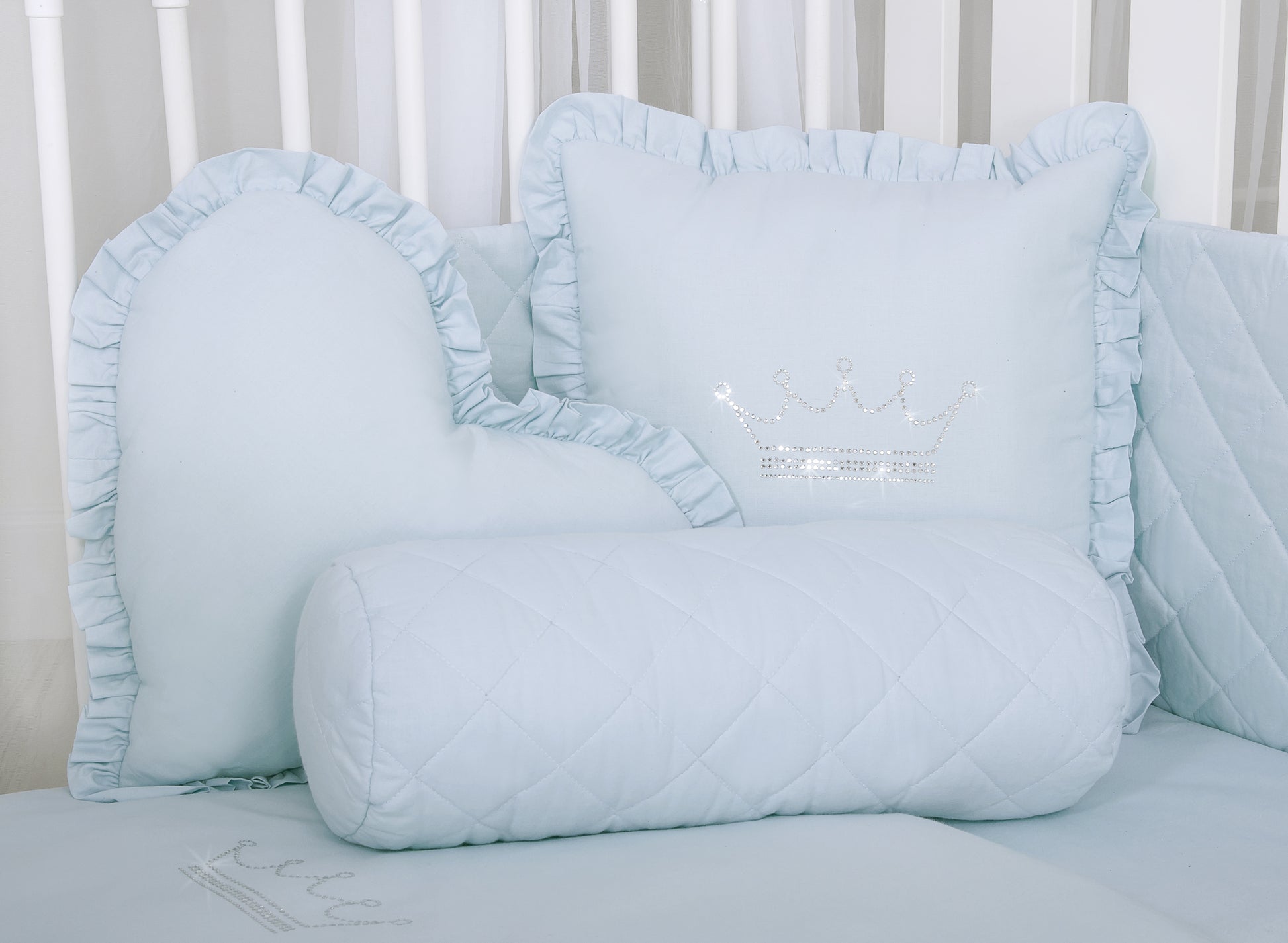 Elegant quiltad rullkudde, tillverkad av certifierad bomull. Denna kudde har ett robust, icke-avtagbart ytteröverdrag och är fylld med Eco Fillball – en avancerad silikonfyllning som ger optimalt stöd och luftcirkulation. Perfekt som en snygg dekoration för ett barnrum.