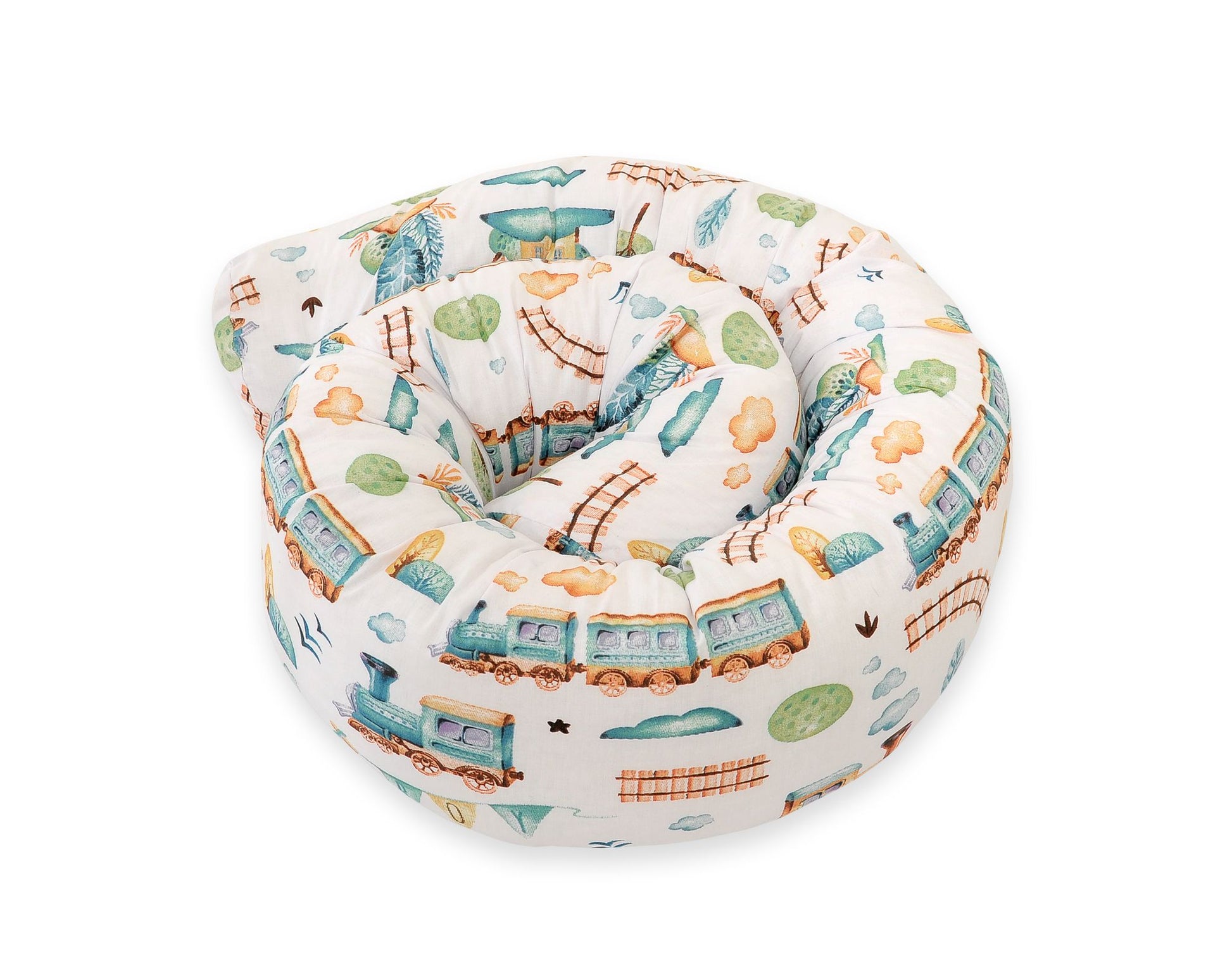 Universell rullstötfångare för spjälsäng eller spjälsäng, mjuk och flexibel, passar enkelt alla former. Denna ihoprullade stötfångare ser även bra ut i en Moses-korg eller spjälsäng. I en större säng eller i soffan ger den ett perfekt skydd mot kalla väggar.