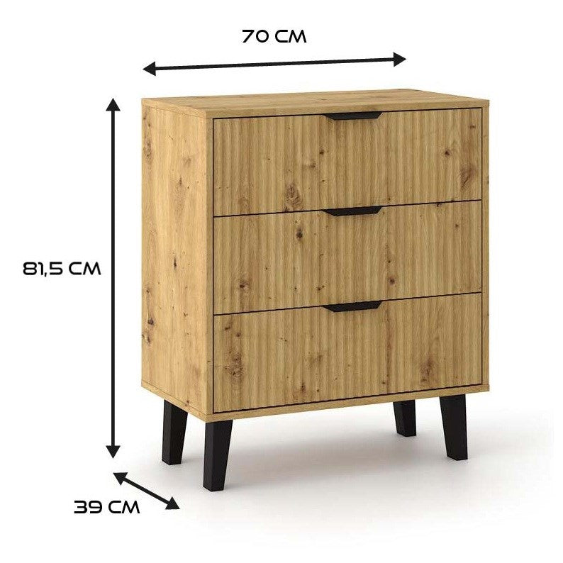 SCANDI 3S Slanke Kast met 3 Lades - Modern Ambachtelijk Eiken | Kleur: Ambachtelijk Eiken