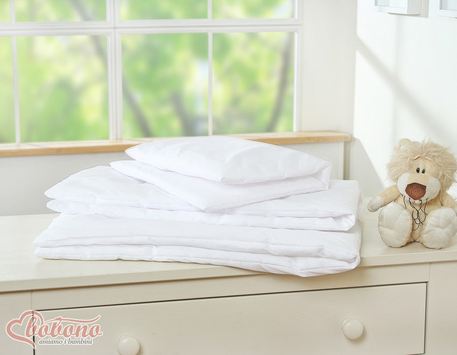 BABY-set (kudde och täcke) för spjälsäng eller spjälsäng. Perfekt anpassat efter din lillas behov.