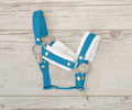 Set grimma A3 med pälsfoder - hästgrimma - justerbar och slitstark - vit-turkos snabel