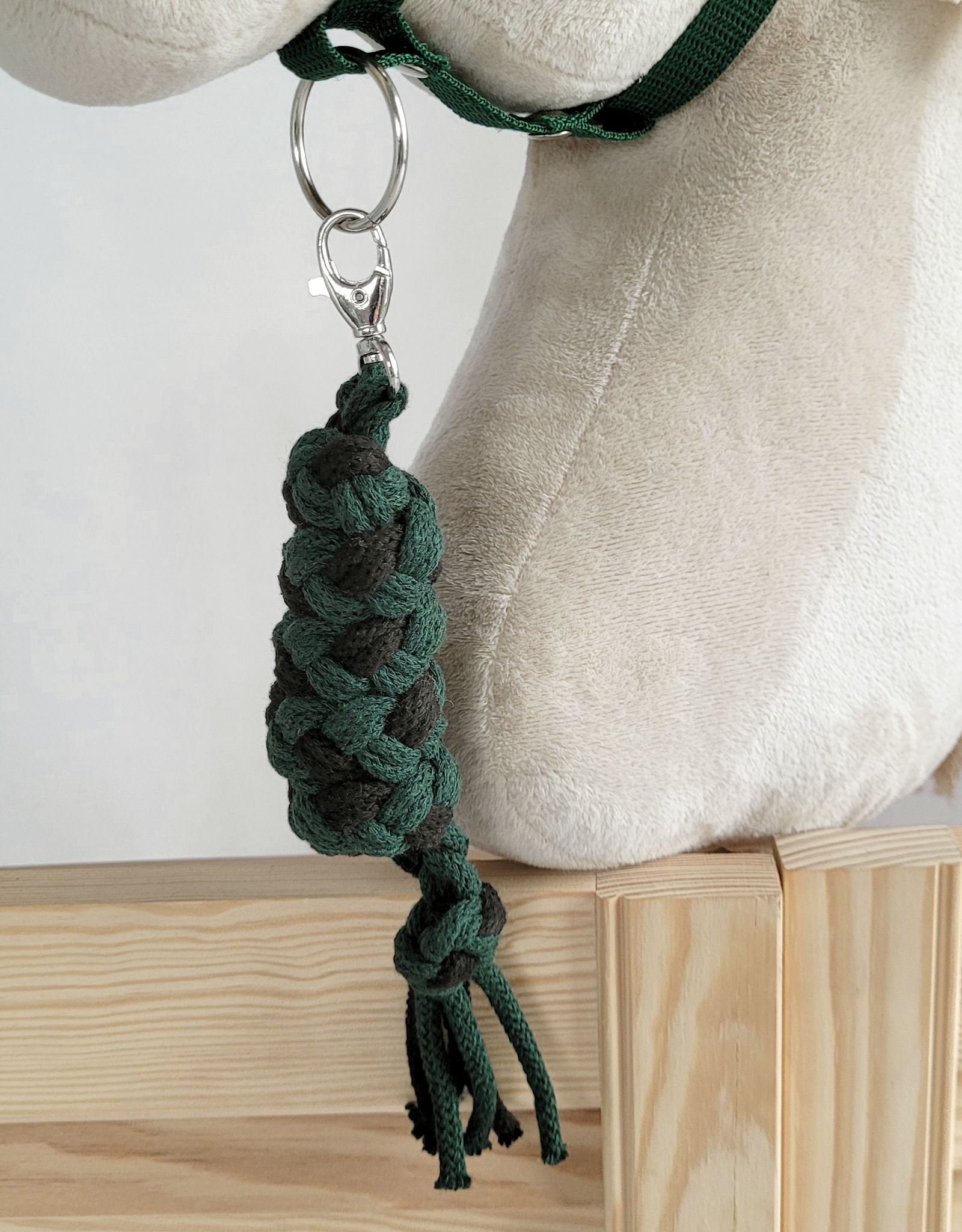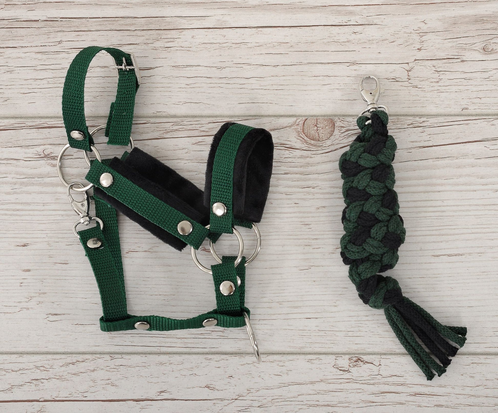 Detta praktiska och slitstarka set innehåller en justerbar A3-grimma med mjuk svart päls och ett handgjort koppel av dubbeltvinnad bomullstråd. Båda tillbehören är utformade för komfort, hållbarhet och perfekt passform på din hobbyhäst.