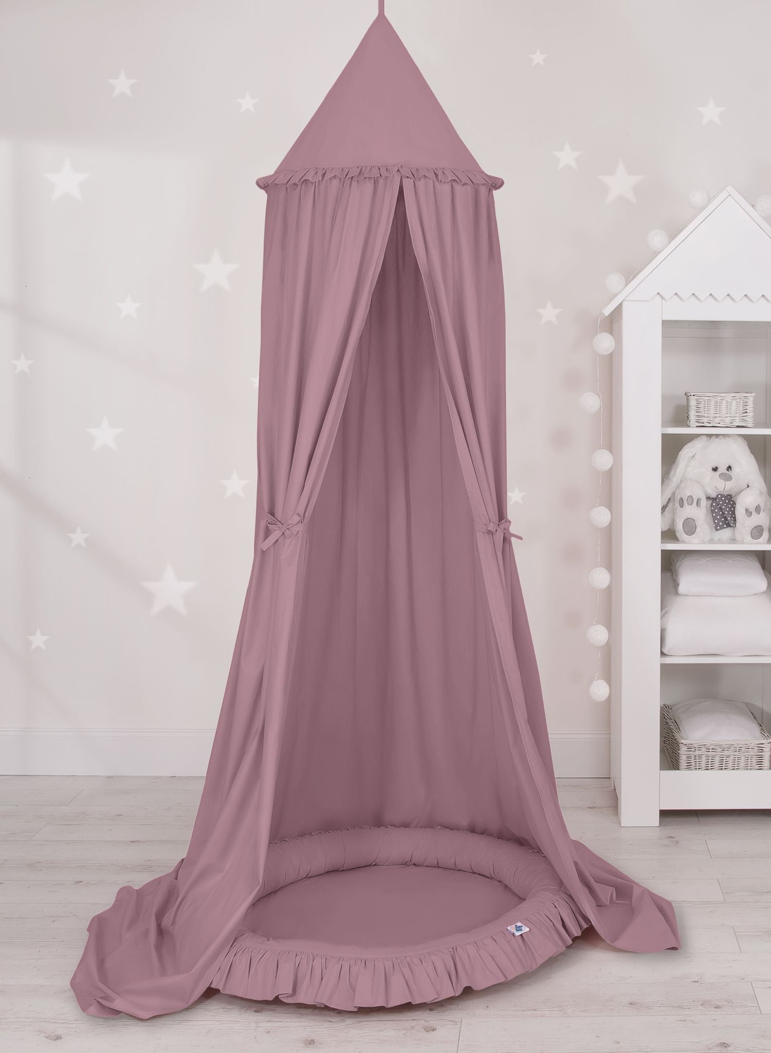 Denna vackra, långa hängande baldakin ger en charmig touch till alla barnrum. Den är perfekt som en unik dekoration ovanför en spjälsäng eller som en mysig lekplats. Den hänger ovanför spjälsängen och skyddar mot överdrivet ljus och buller, vilket skapar en trygg och mysig tillflyktsort.