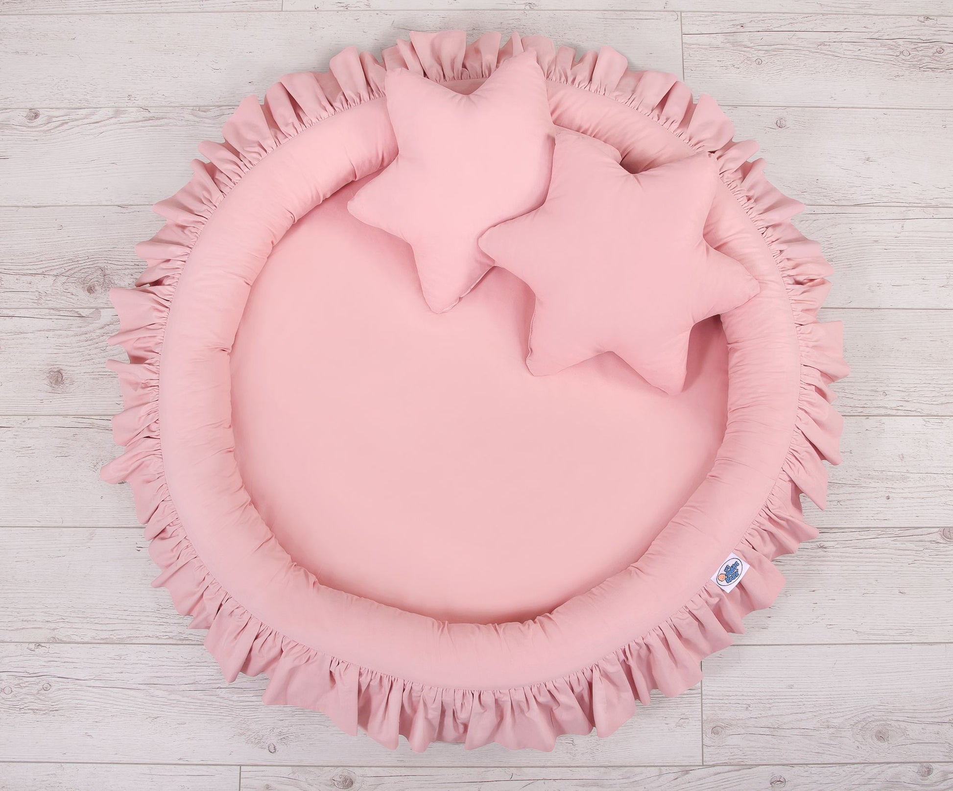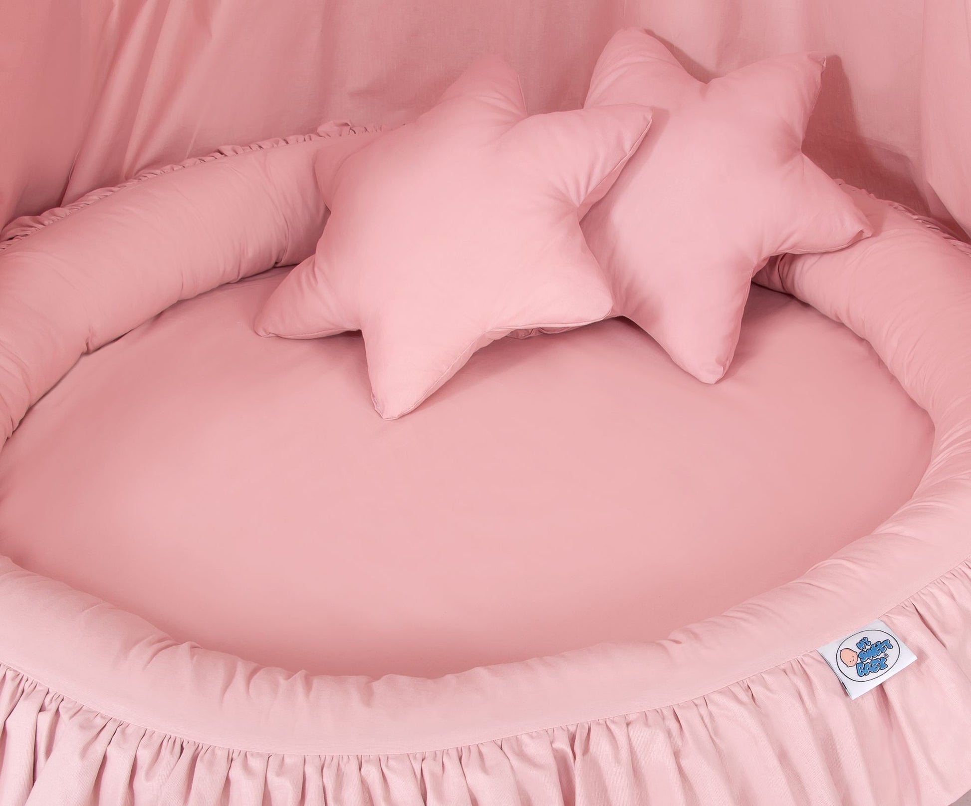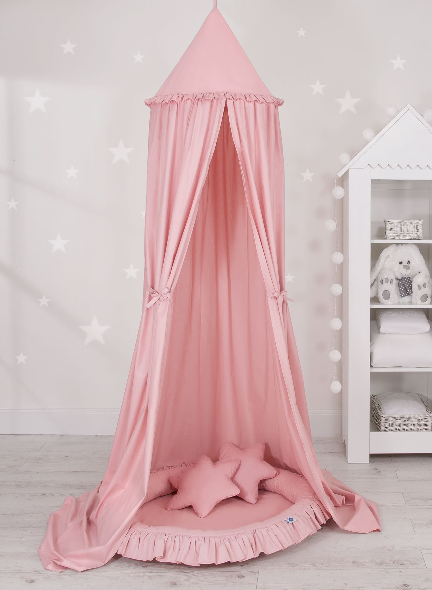 Set: Hängande baldakin för barnrum – bomull + bo med volang + kuddar - pastellrosa