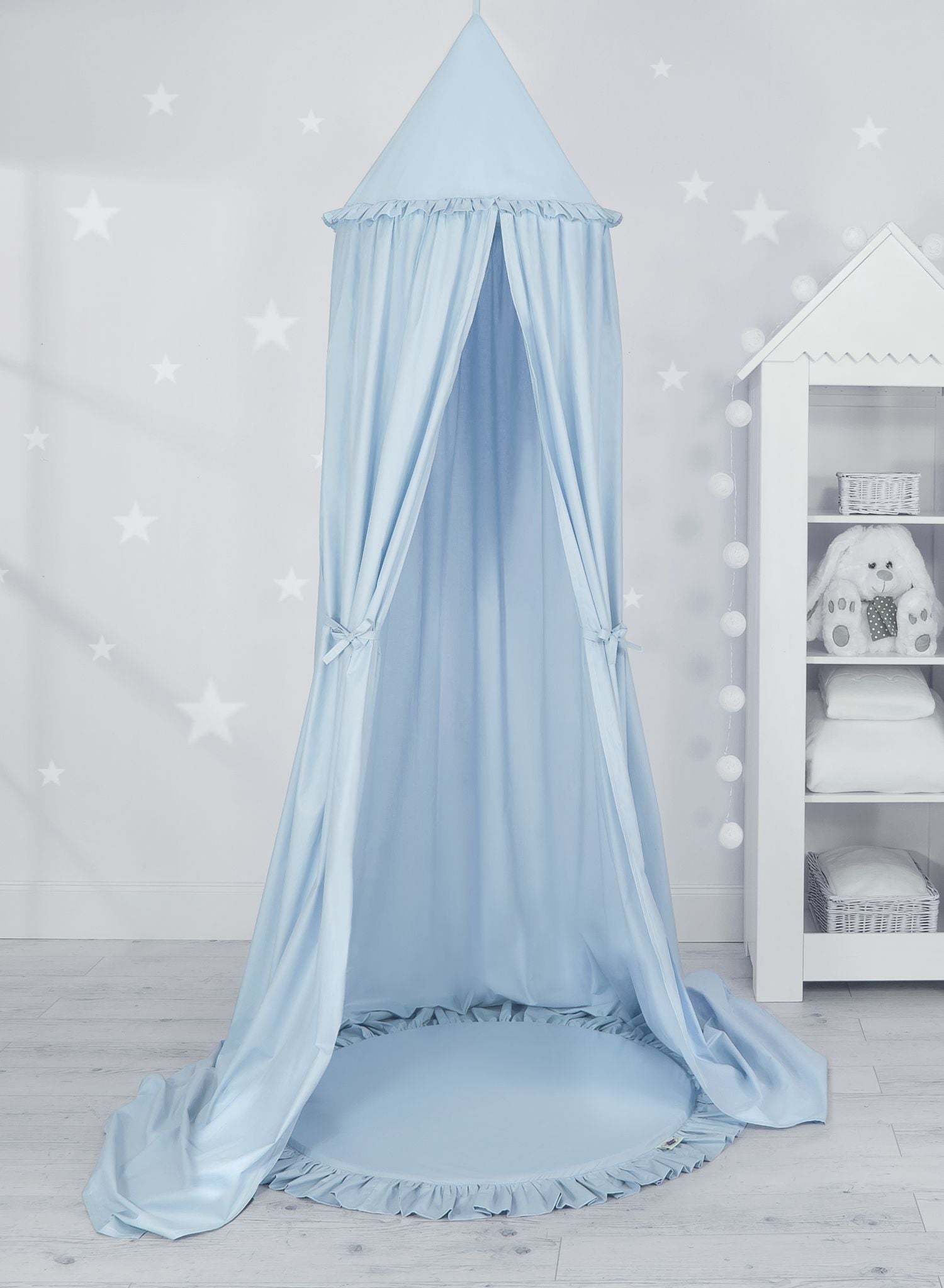 Set: Hängande baldakin för barnrum + Golvlekmatta - Blå