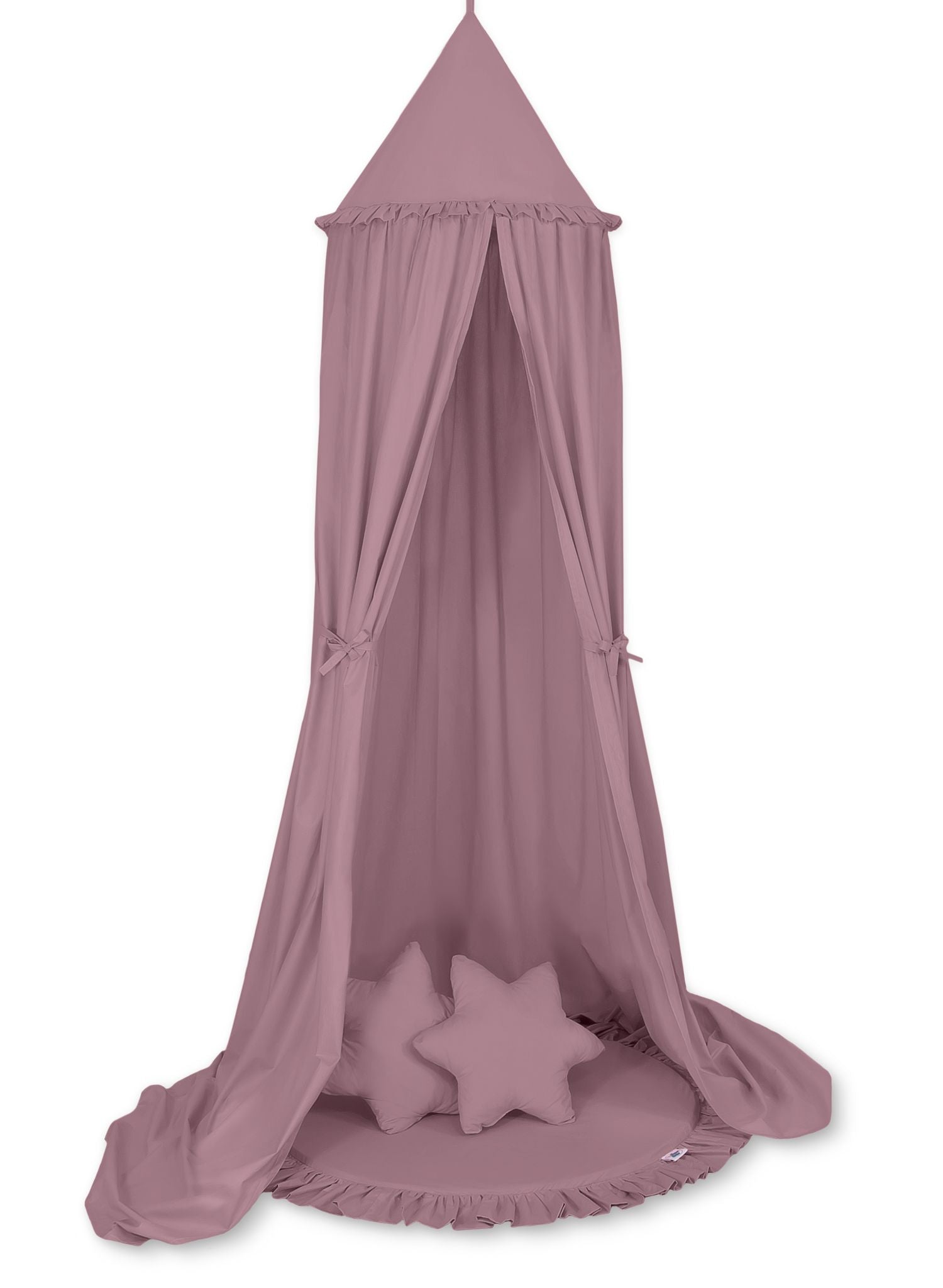 Hängande baldakin och lekmatta – himmelssäng – skydd och komfort för barn – pastellviolett