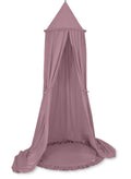 Skapa en mysig och inbjudande plats i barnrummet med detta vackra set bestående av en lång, hängande baldakin och en mjuk lekmatta i pastelllila.