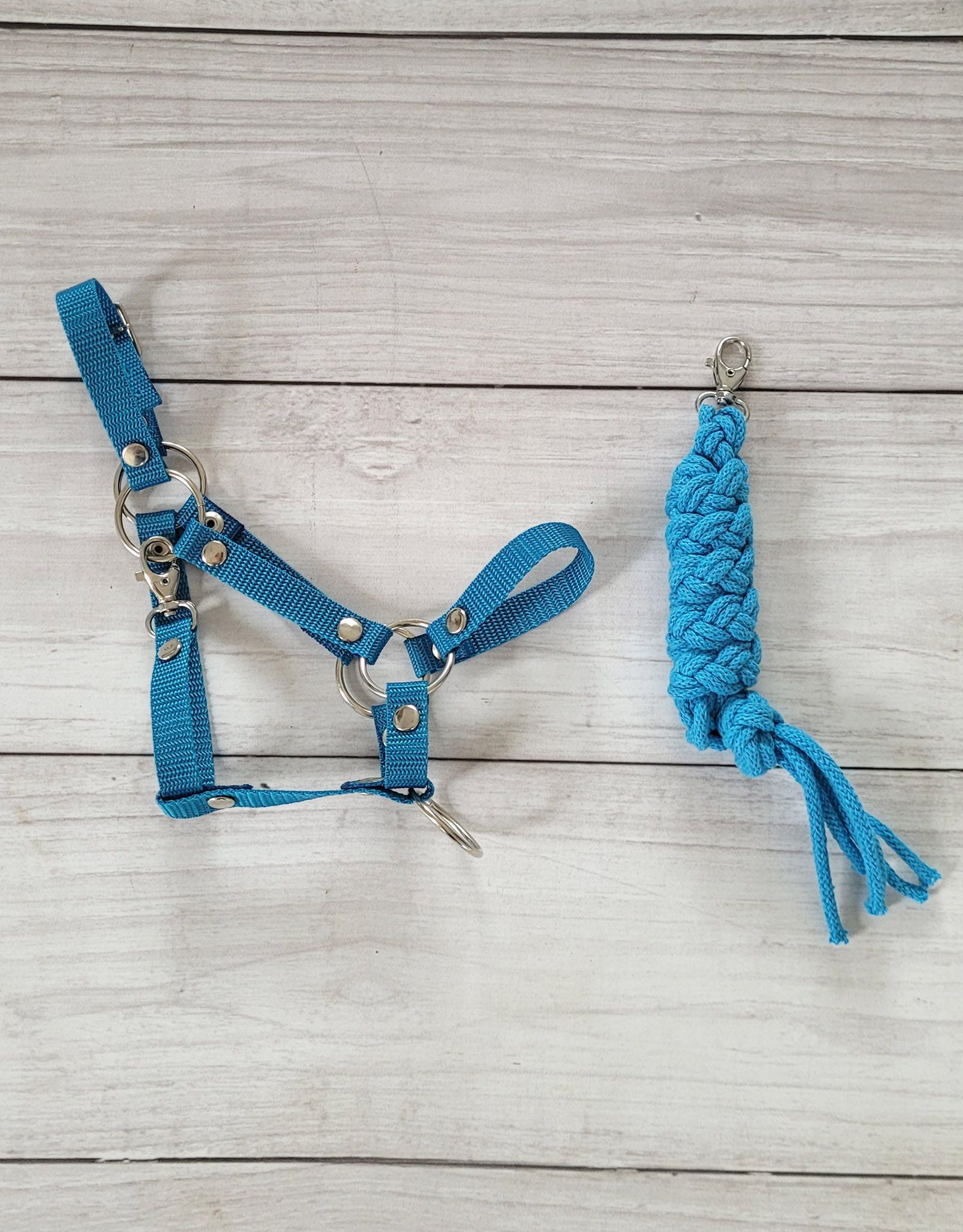 Käpphästens grimma A3 + koppelset - justerbar, bekväm, turkos, slitstarkt material