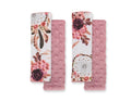 Praktiska och snygga dubbelsidiga säkerhetsbälteskuddar, perfekta för bilbarnstolar, bärselar eller barnvagnar. Tillverkade av 100 % bomull med ett mjukt minkyfleecefoder för extra komfort.