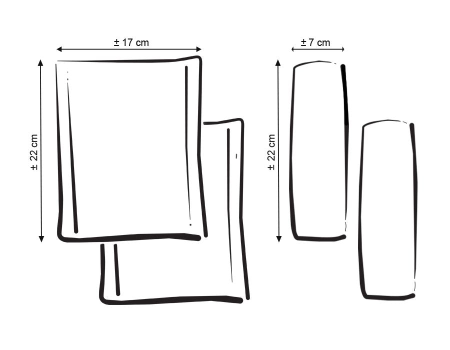 - Storlek: 22 x 17 cm (utvikt), 22 x 7 cm efter montering