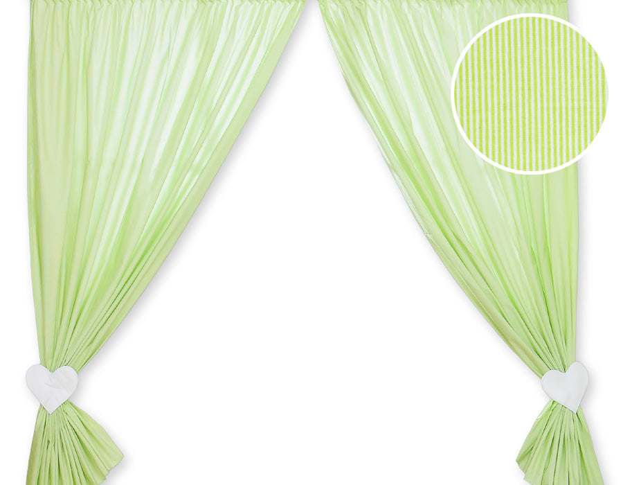 Gardiner till babyrummet - Hängande hjärtan gröna ränder