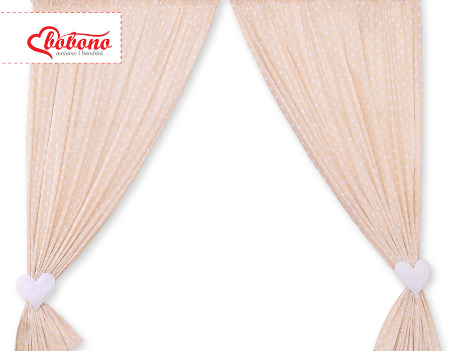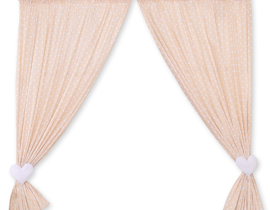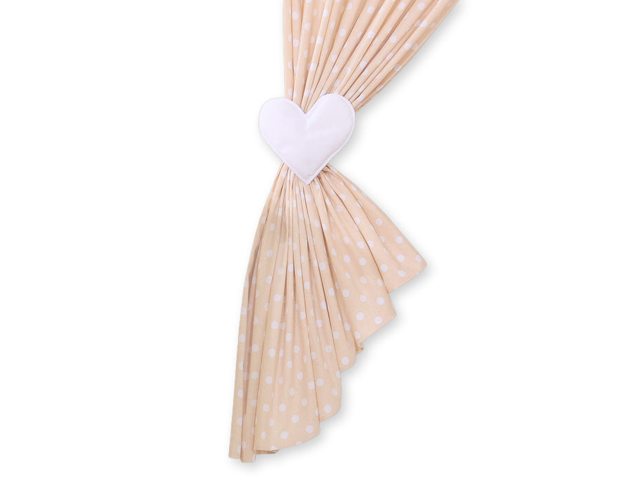 Gardiner till babyrum - Hängande hjärtan vita med beige prickar