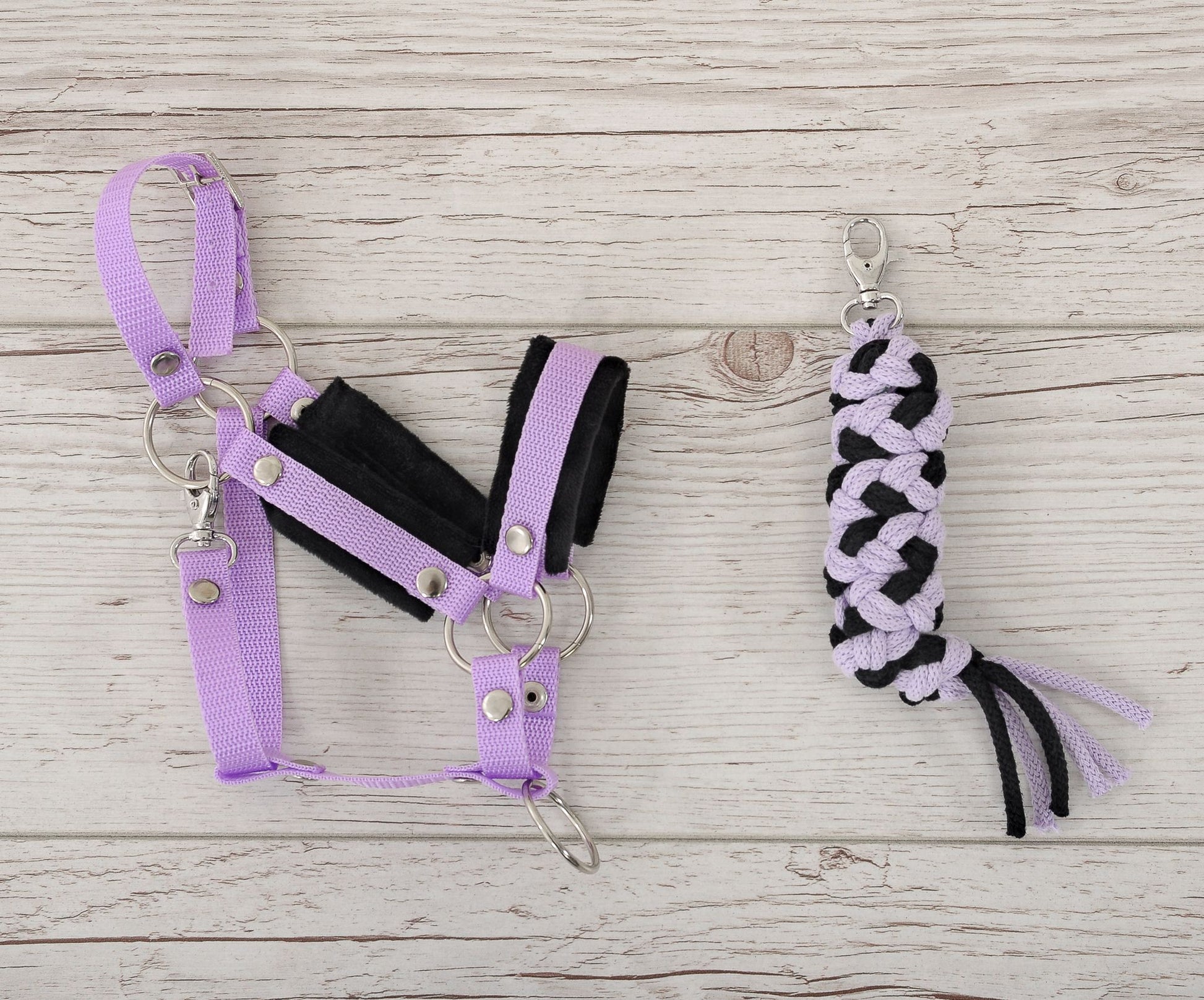 Set med 2 grimmor och tyglar – hästgrimmor – justerbara och mjukt pälsfodrade