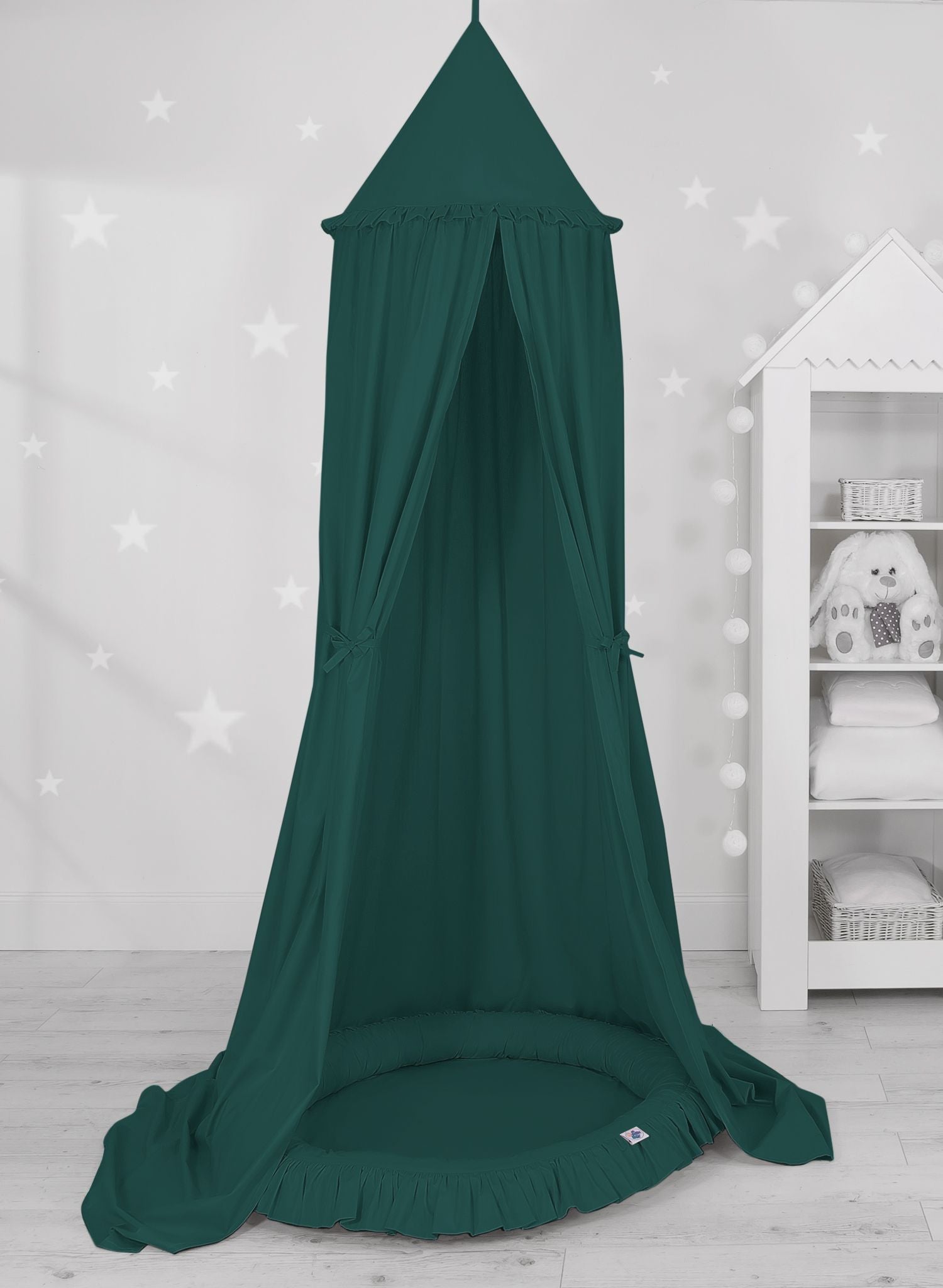 Set med 2 hängande baldakiner och babynest – flaskgrönt – allergivänligt och handgjort