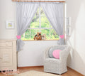 Set med 2 barngardiner - nätgardin - genomskinlig med hjärtmönster i grått och rosa