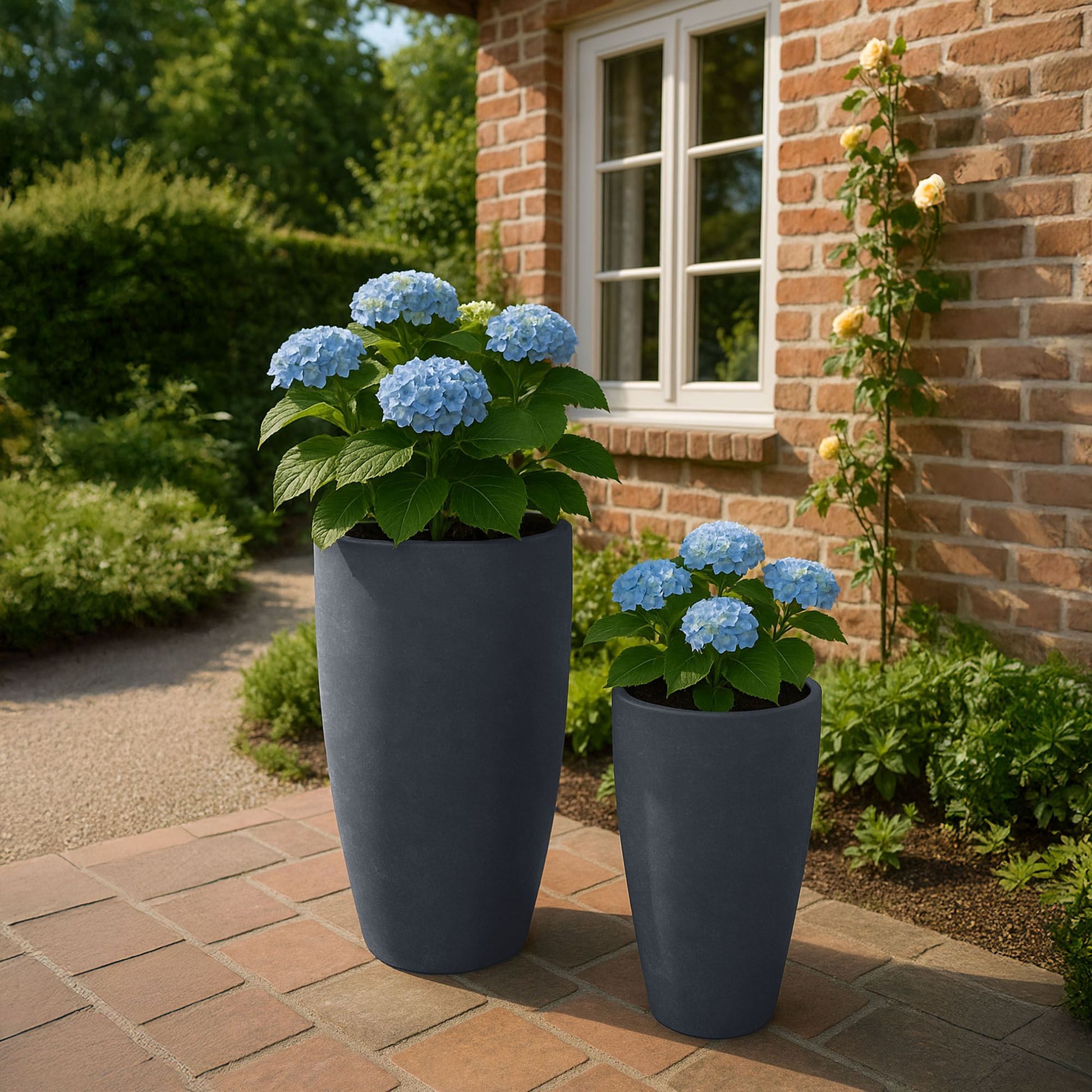 Setet innehåller krukor i två olika storlekar, vilket erbjuder en mängd olika designalternativ för både inomhus och utomhus. Tack vare sin stenliknande finish passar de sömlöst in i olika trädgårds- och inredningsstilar.