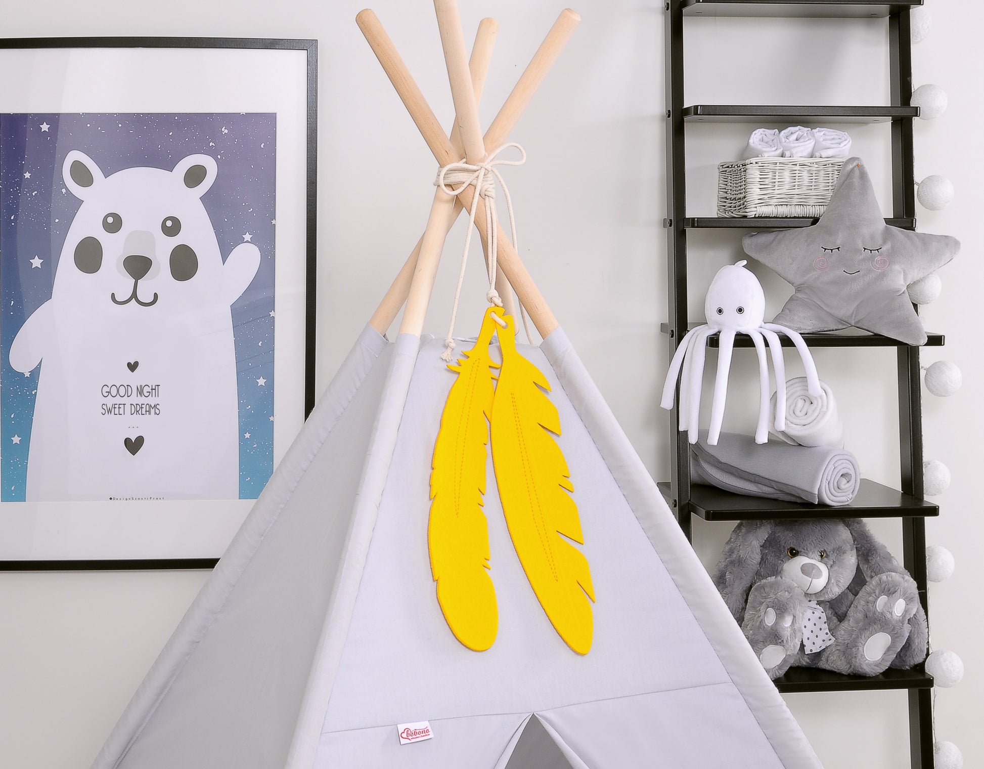 Skapa en glad och varm atmosfär i ditt barns rum med dessa vackra dekorativa filtfjädrar. Tillverkade av slitstark 4 mm tjock filt är dessa fjädrar robusta men ändå lätta.