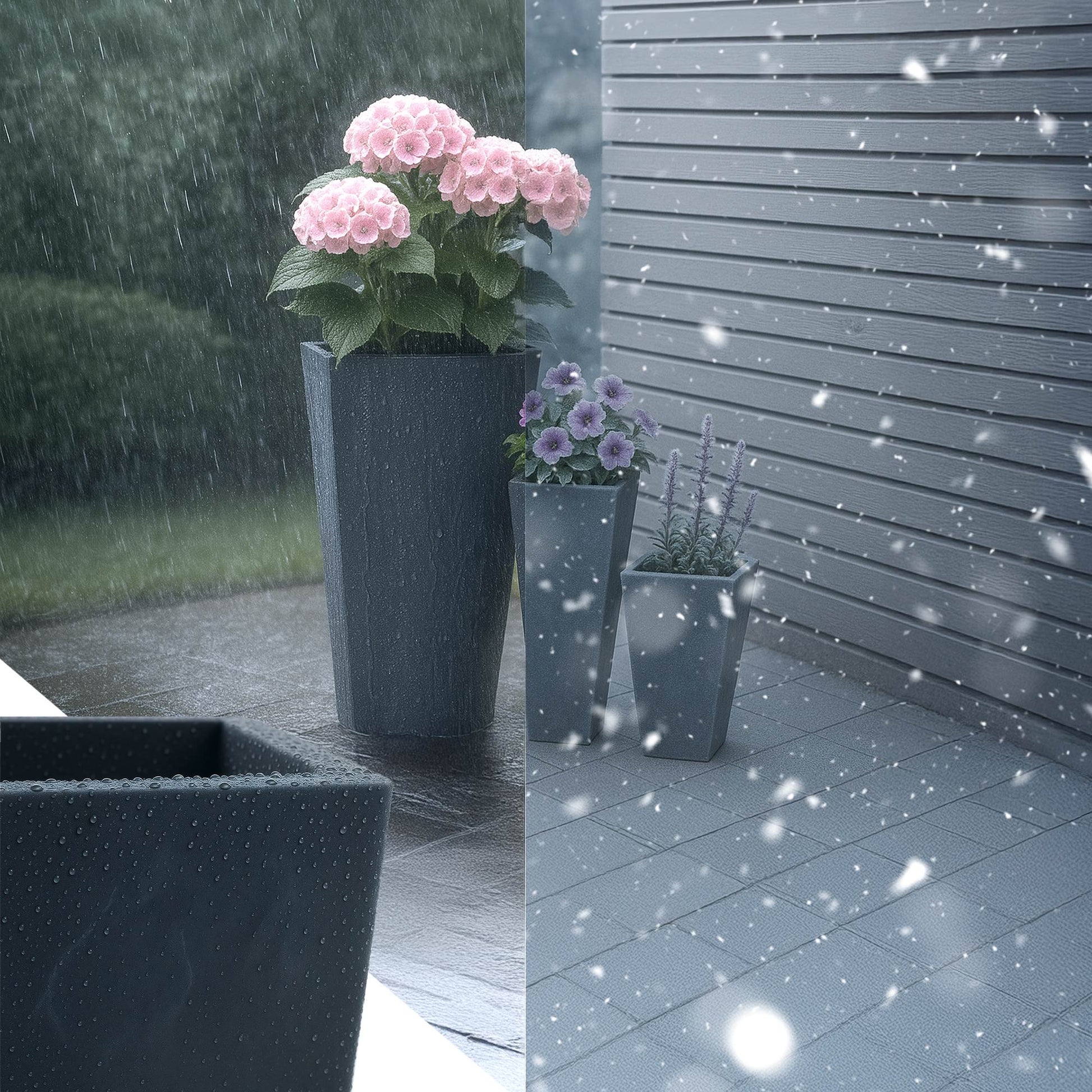 Set med 3 fyrkantiga blomkrukor - Väderbeständig och ventilerande design