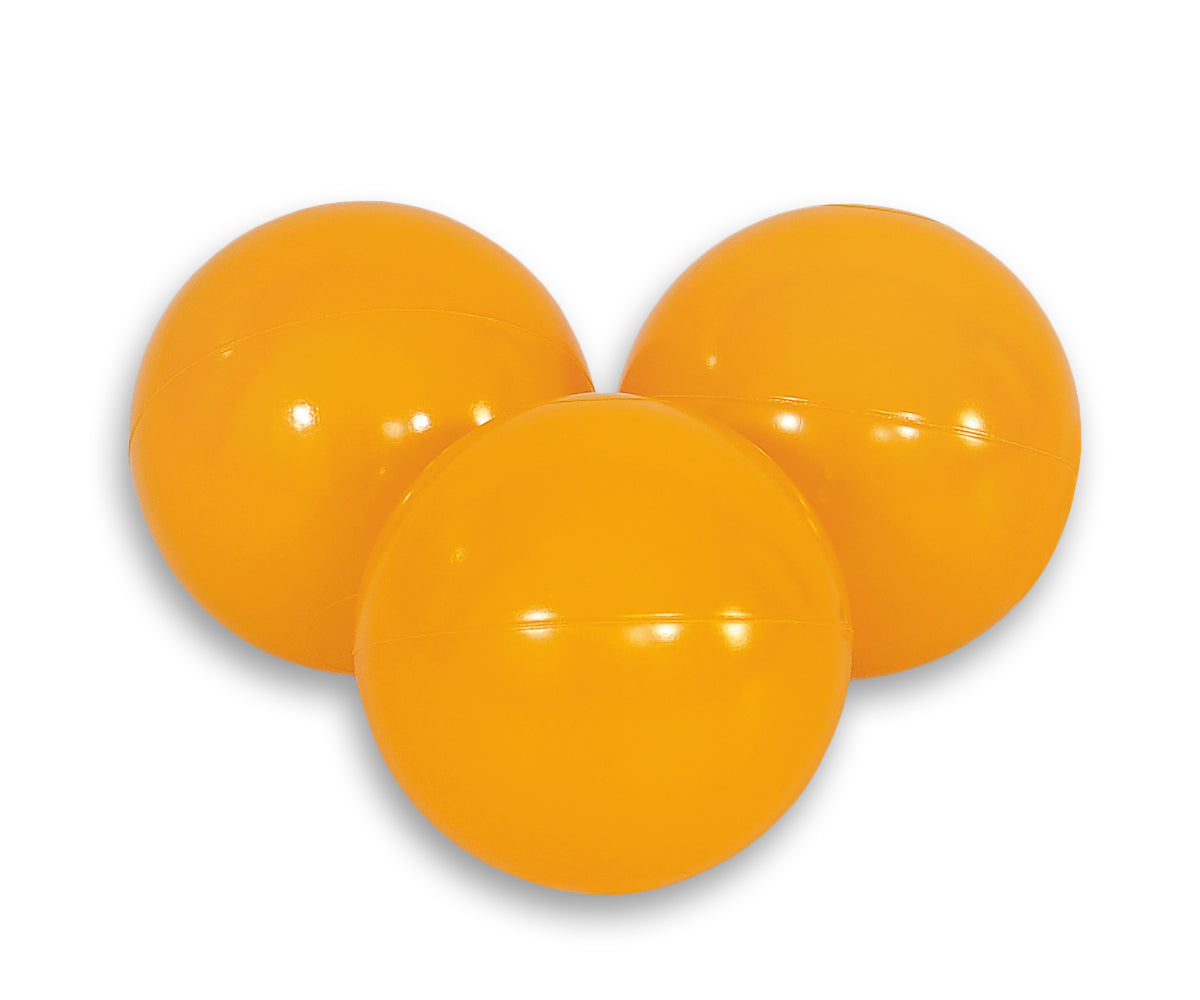 Set med 50 plastbollar - lekbollar - barnsäkra och flexibla - honungsgula - 7 cm