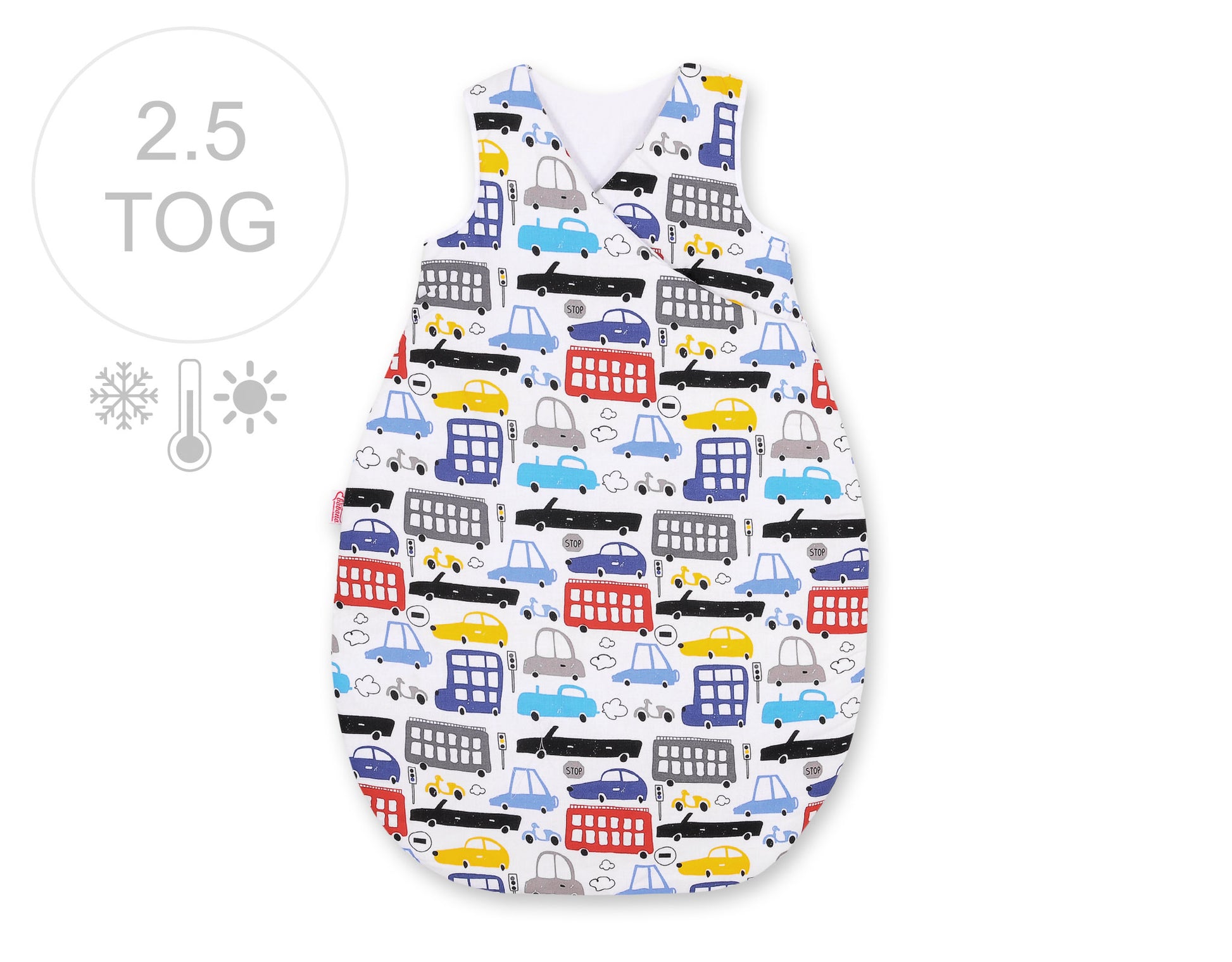 Sovsäck för spjälsäng - året runt, mjuk bomull, dragkedja på sidan, 75 cm, färgglada bilar