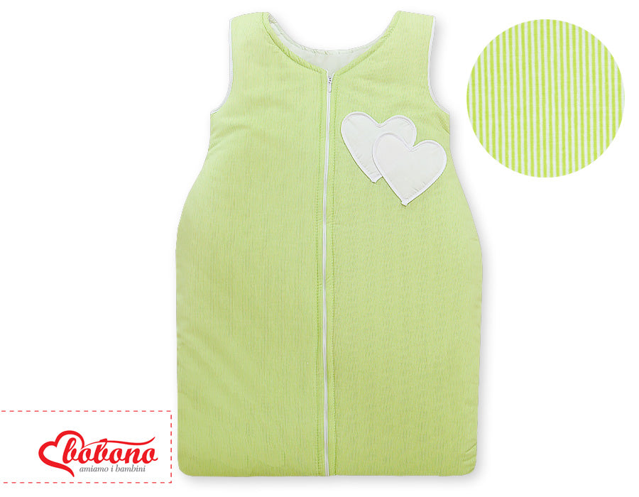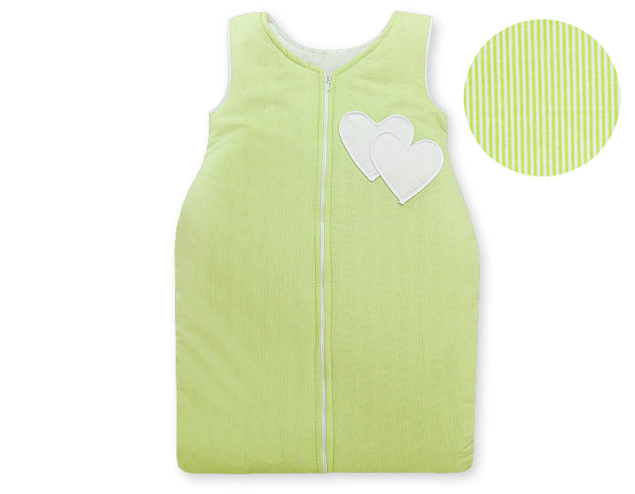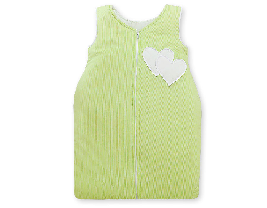 Sov med stil med sovsäcken - Hängande hjärtan grönrandig