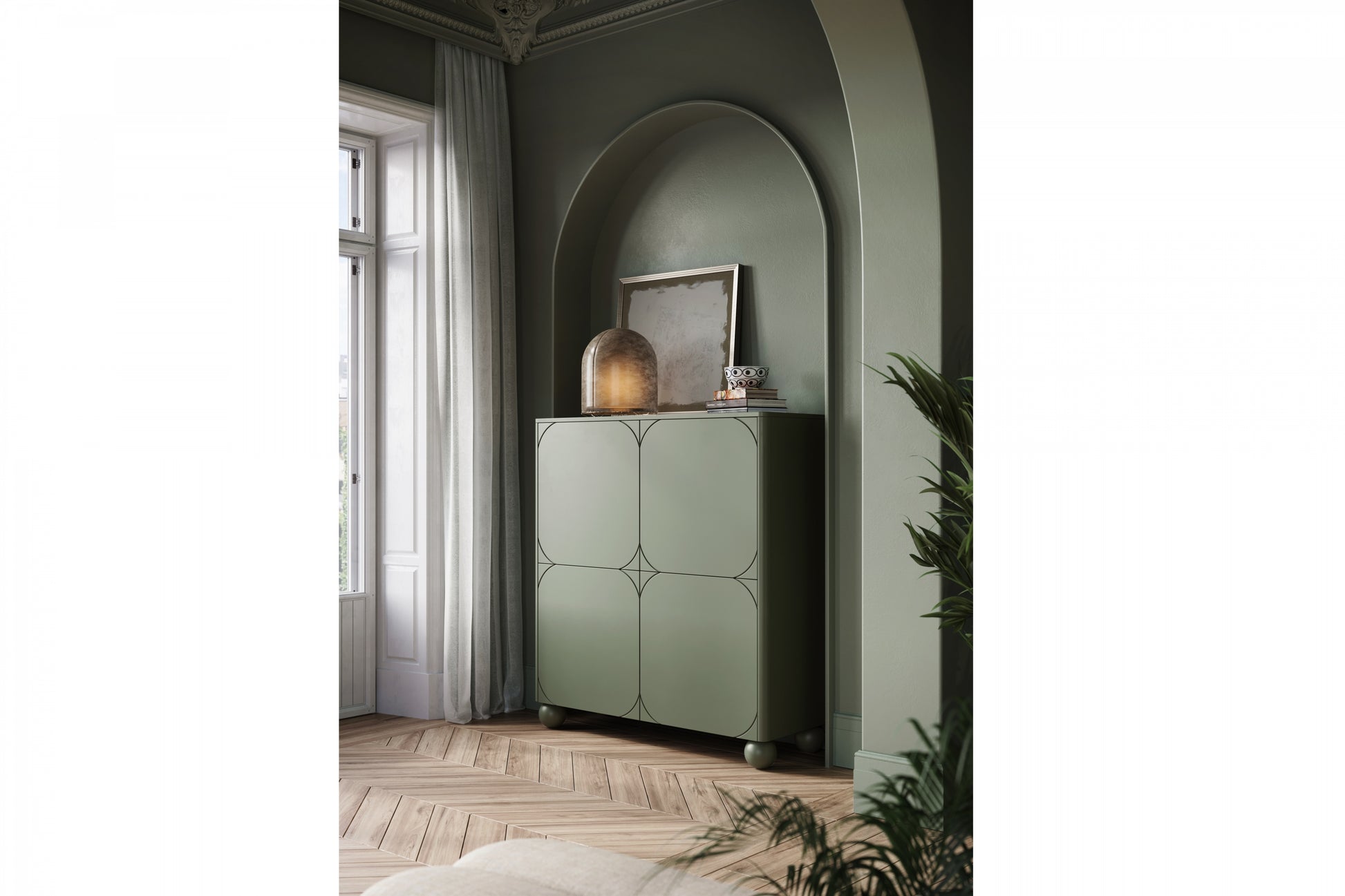 Sonatia II Hoge Ladekast 120 cm – Tweedeurs met Verborgen Laden – Olijfgroen