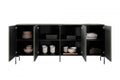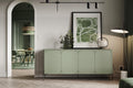 De Sonatia ladekast met vier deuren is dé perfecte combinatie van design en functionaliteit. Dankzij de unieke olijfgroene kleur en de stevige metalen poten wordt elk interieur direct voorzien van een stijlvolle en moderne uitstraling. Gemaakt van 18 mm dik MDF-plaat, biedt deze kast duurzame kwaliteit en eigentijdse elegantie. Het "push to open"-systeem zorgt ervoor dat de deuren eenvoudig te openen zijn, terwijl de ruime planken volop opbergruimte bieden voor al uw woonaccessoires en benodigdheden. Een echte eyecatcher in elke woonkamer!