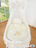 Spjälsäng i rotting med baldakin - Björn med rosett i krämfärg