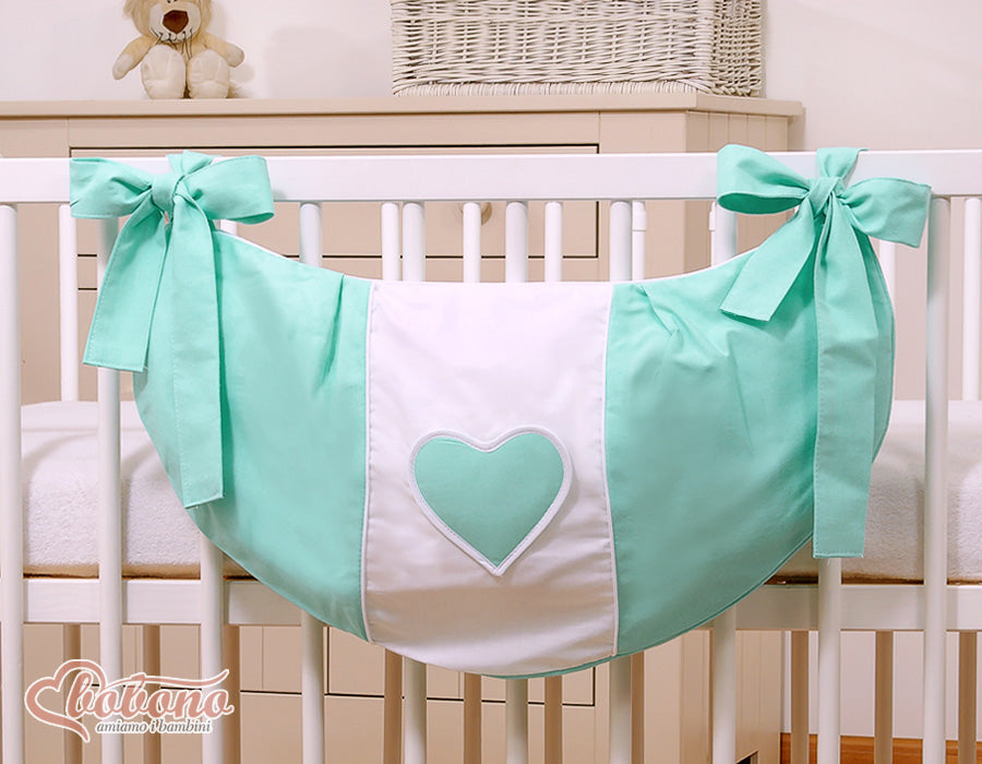 1 praktisk leksakspåse med hängande hjärtan i mintfärg