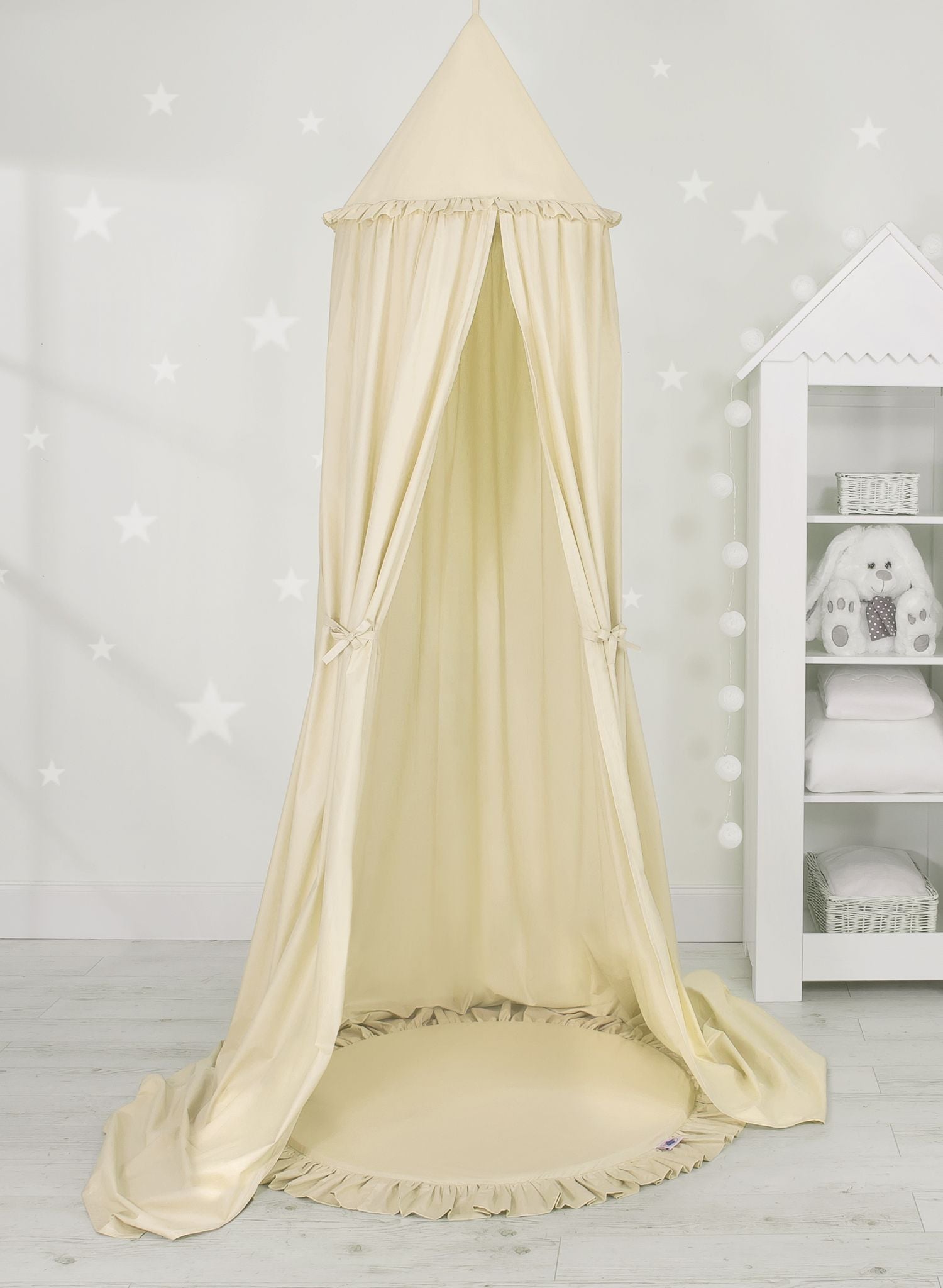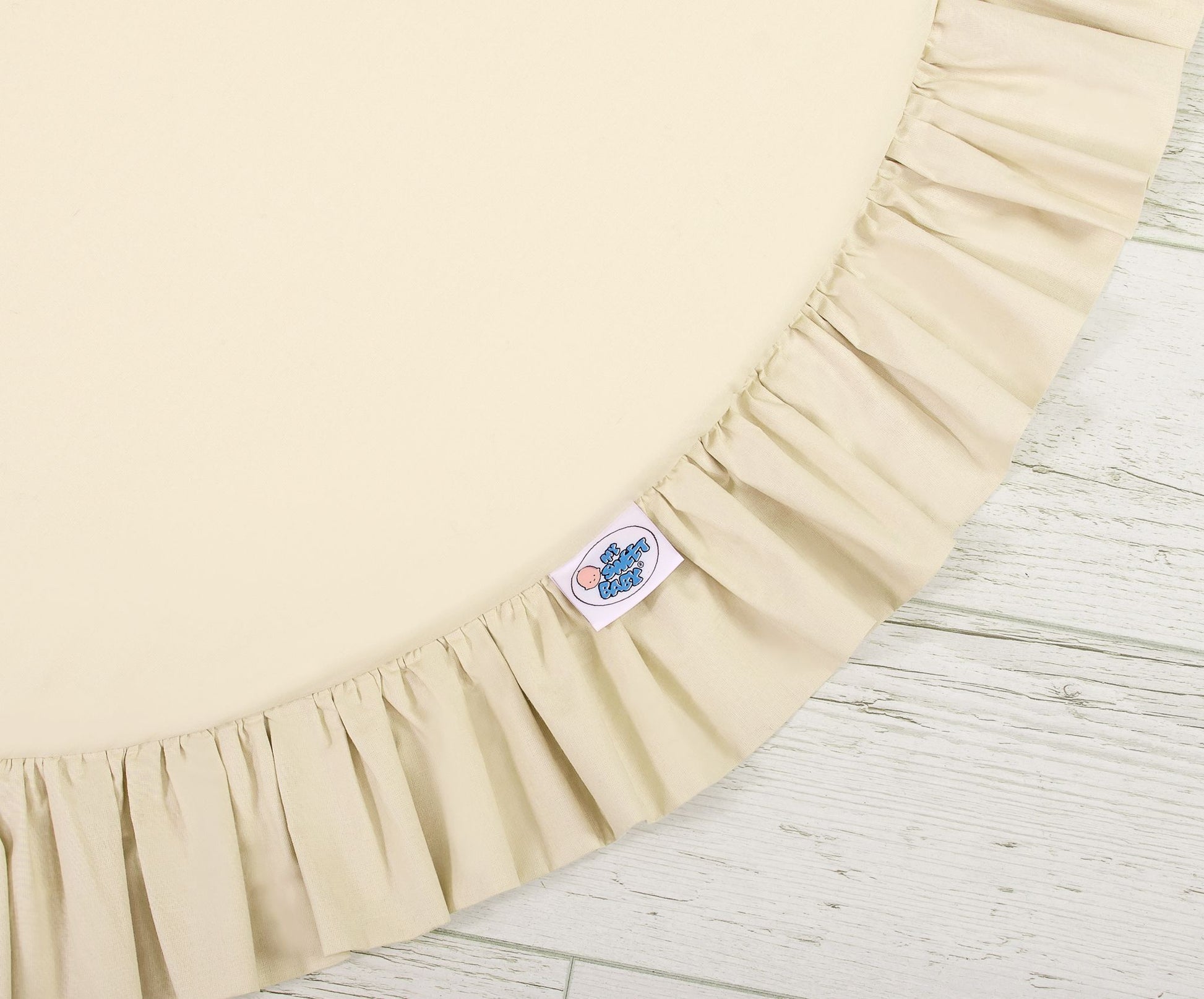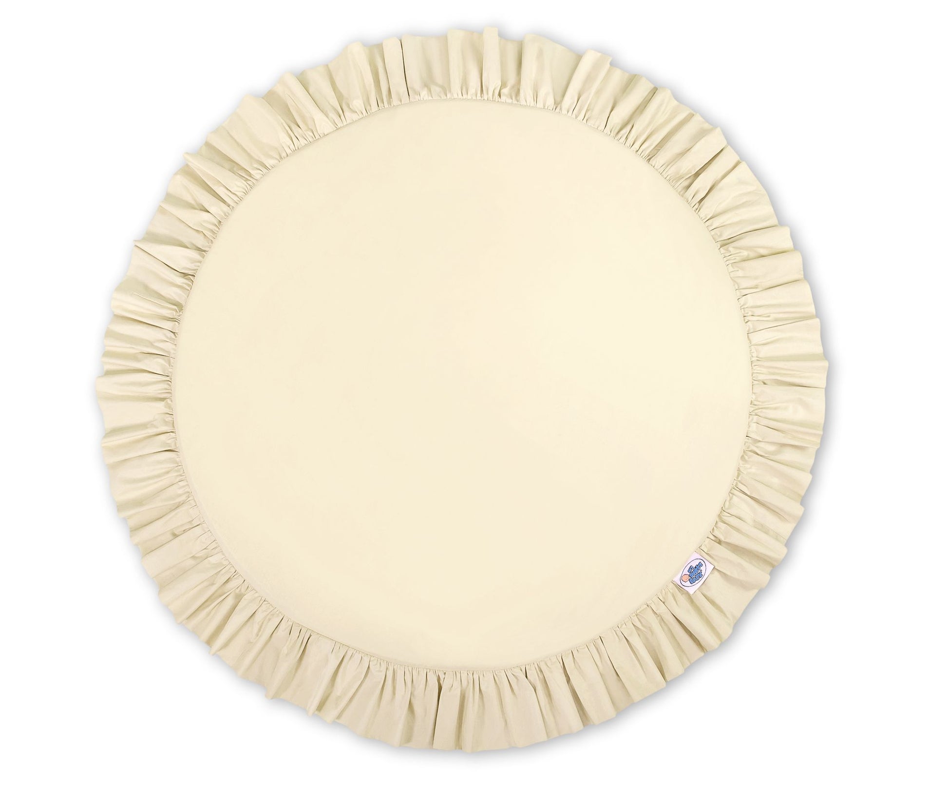 En vacker krämfärgad lekmatta med en elegant volang. Denna multifunktionella matta kan användas som filt, lekmatta eller som bas för en lång lekhätta. Från de allra första dagarna i livet är det en idealisk plats att vila eller öva på mage.