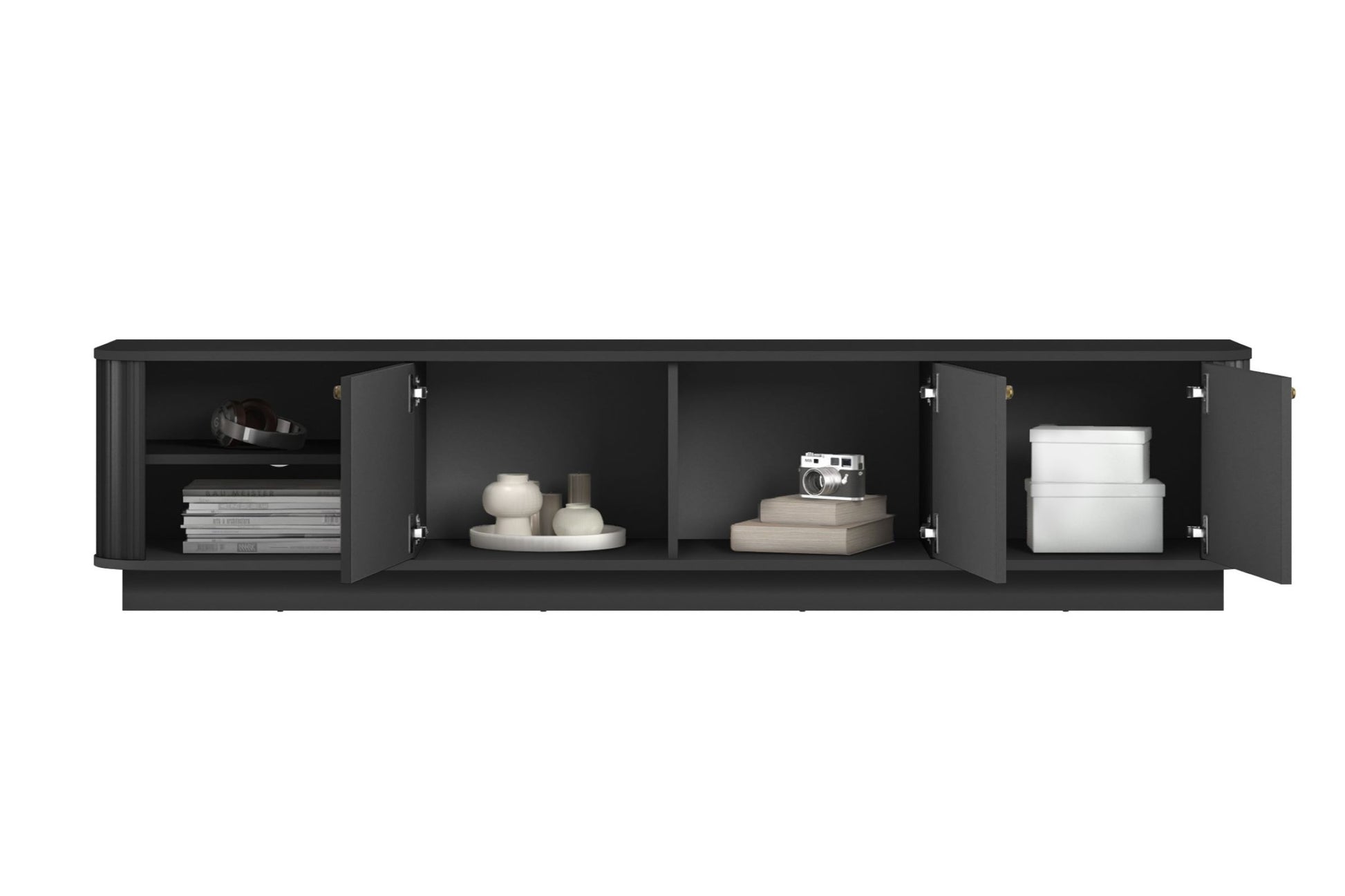 Vesper 3D TV-meubel 187 cm met geribbelde fronten - Zwart met gouden handgrepen | Kleur: Zwart met