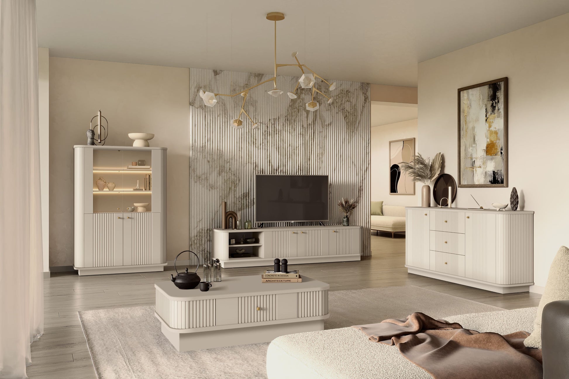 Vesper 3D TV-meubel 187 cm Kasjmier met Gouden Handgrepen