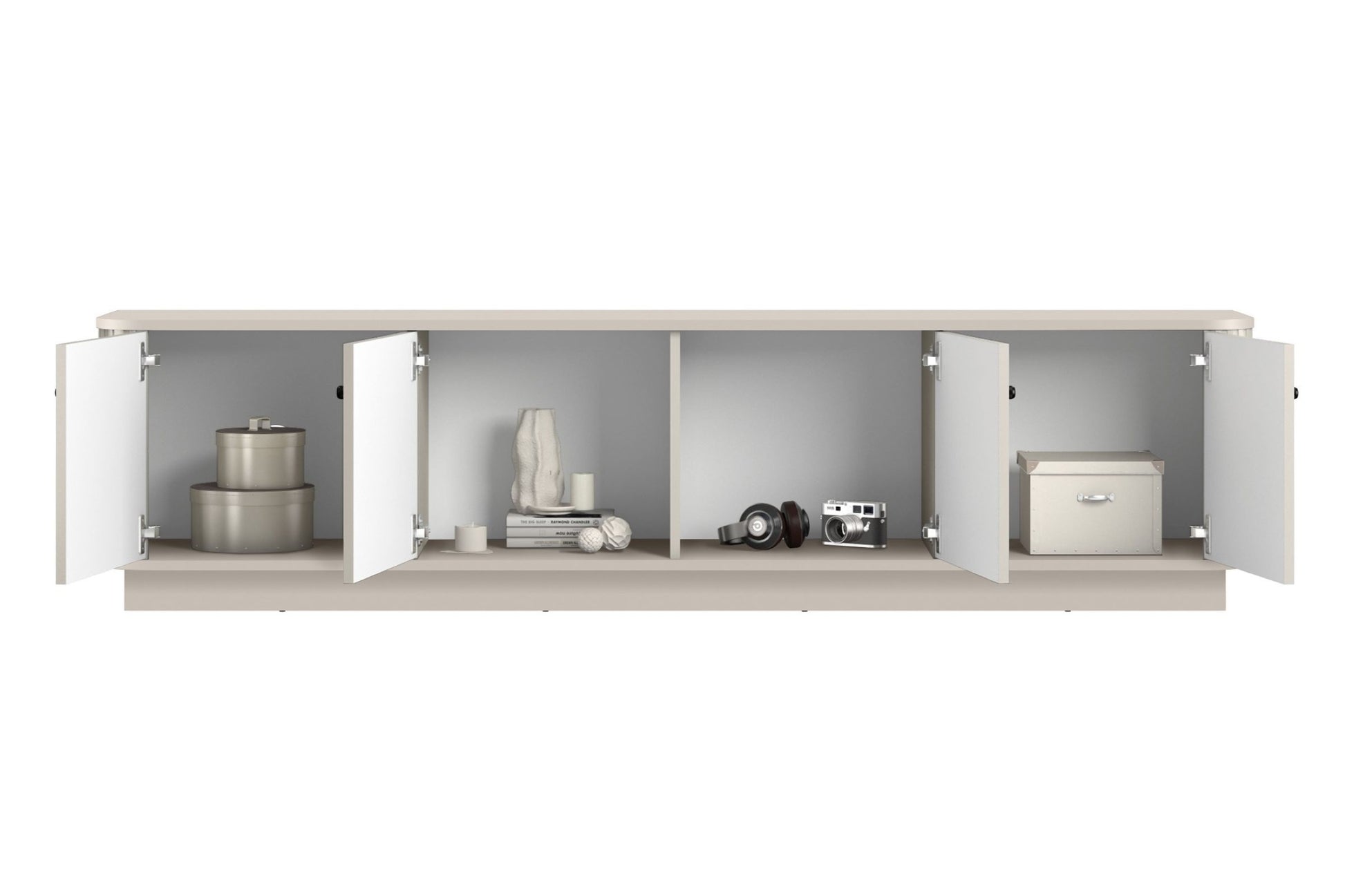 Vesper 4D TV-meubel 187 cm op voetstuk – Kasjmier / Zwarte Handgrepen