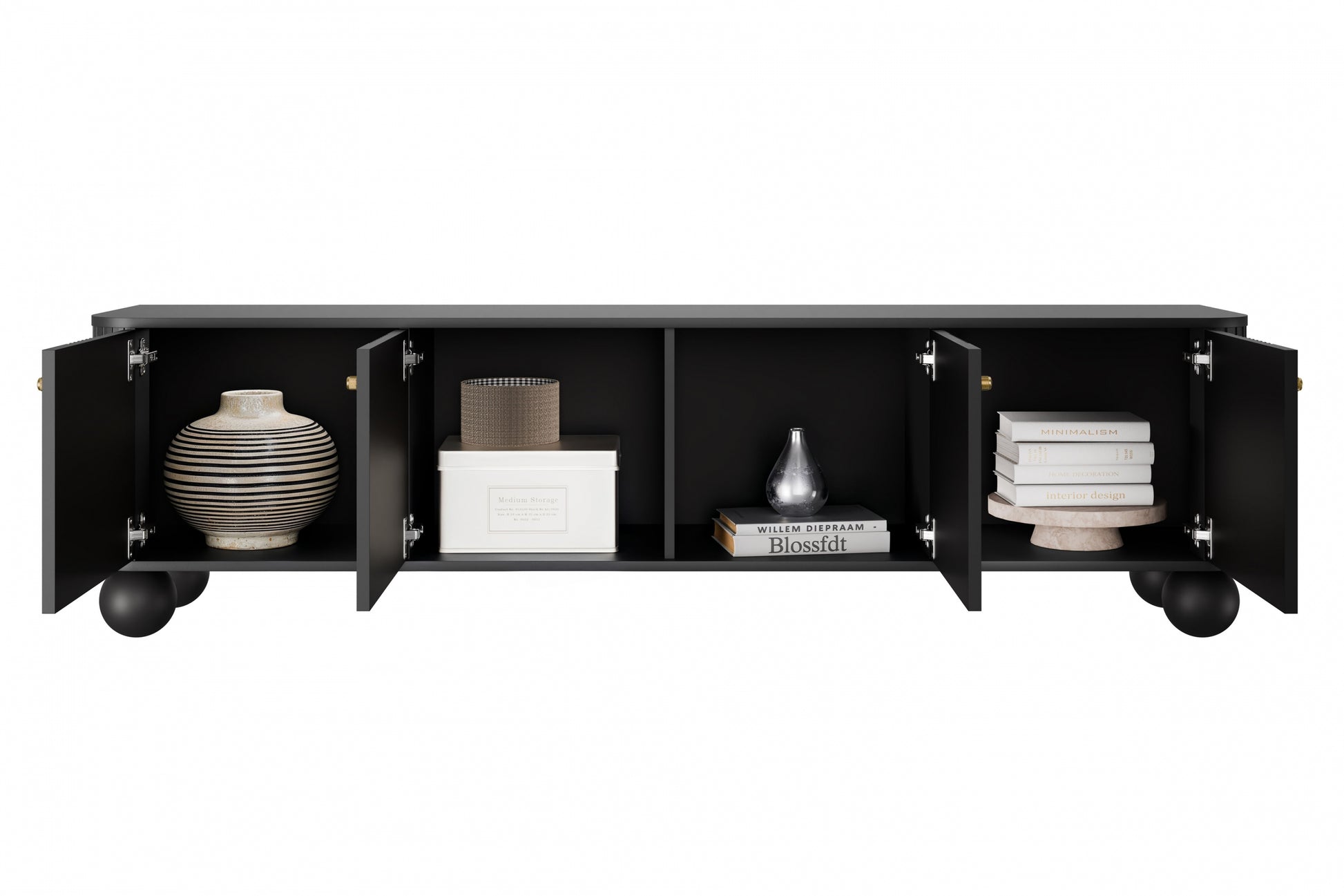 Vesper 4D TV-meubel 187 cm - Zwart met gouden accenten en bolpoten | Kleur: Zwart met goud