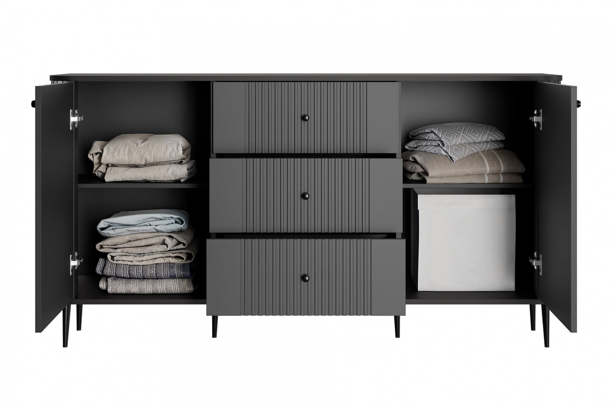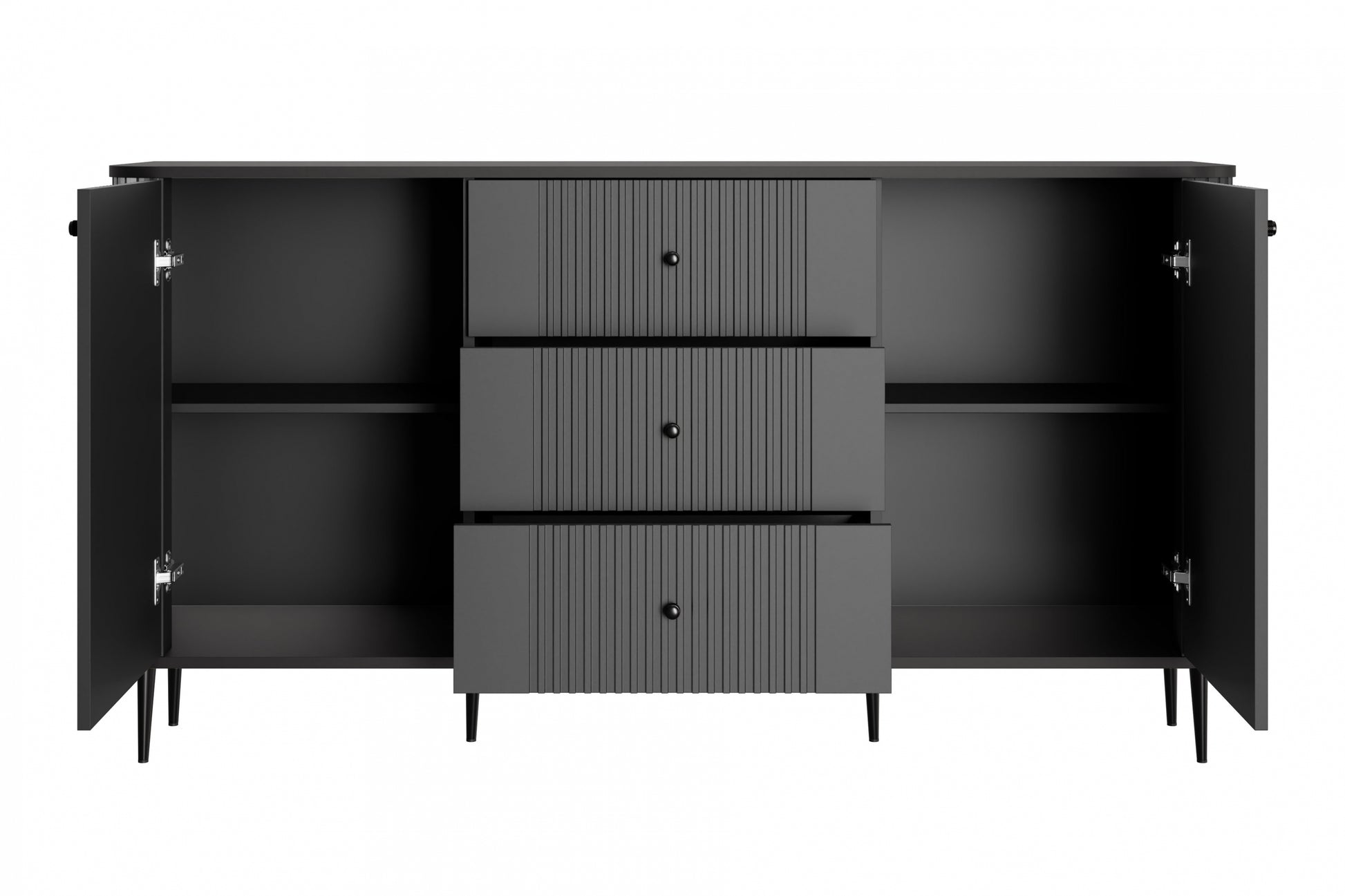 Vesper ladekast 160 cm - 2 deuren, 3 lades, mat zwart design | Kleur: Zwart | Maat: 160x85x38 cm