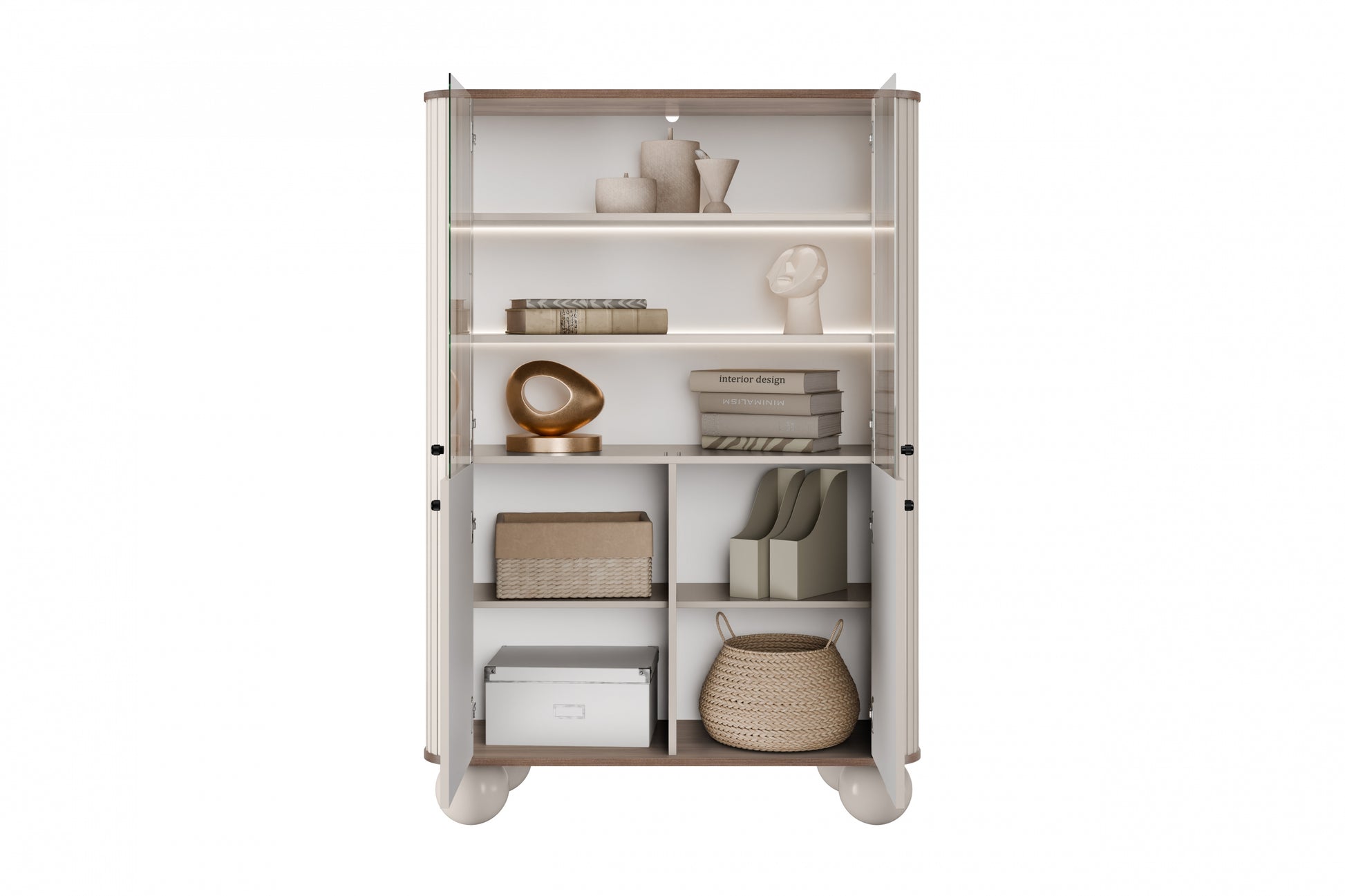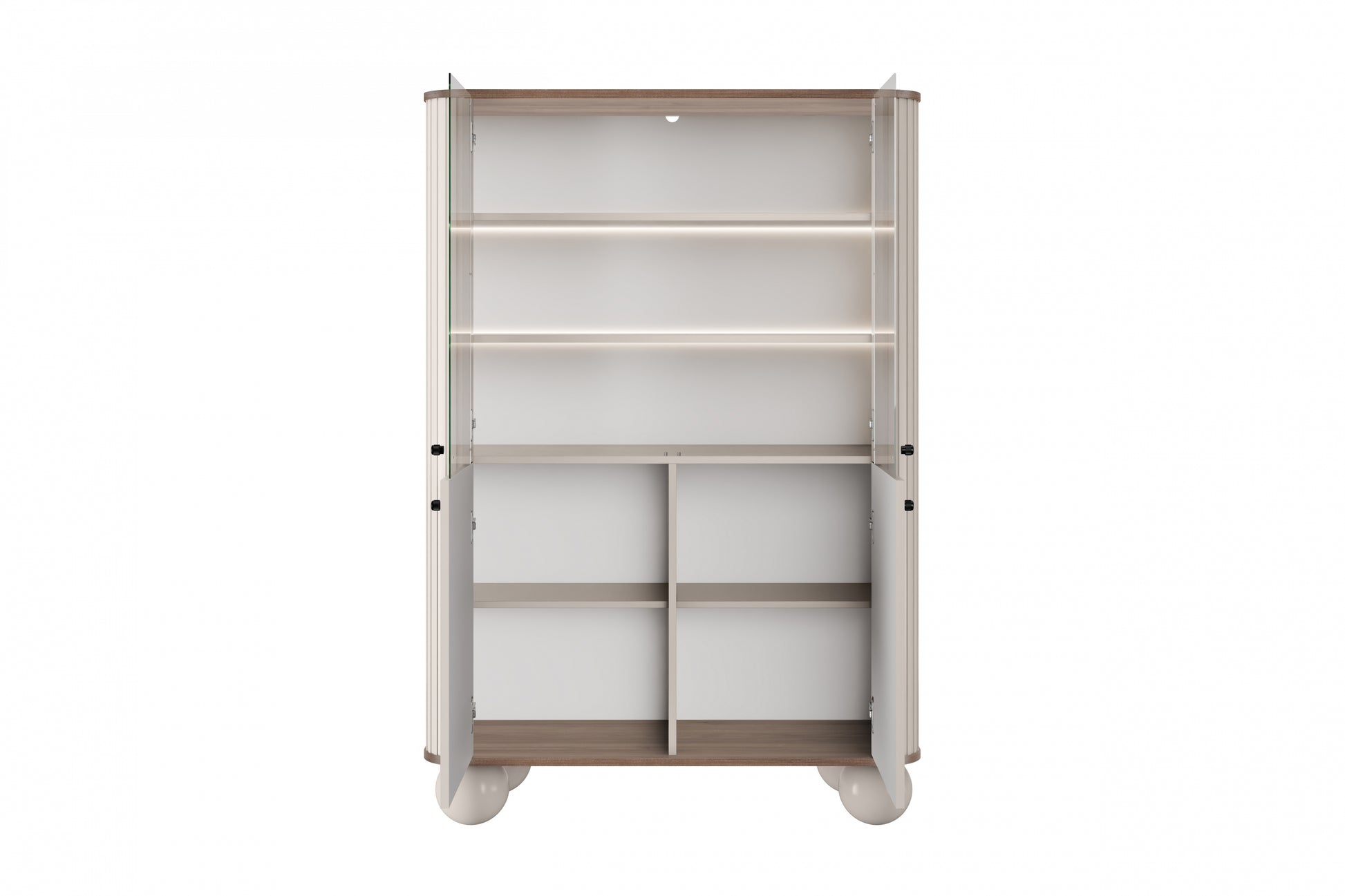 Vesper Vitrinekast met LED-verlichting - 4 deuren & planken | Kleur: Kasjmier/Walnoot/Zwart