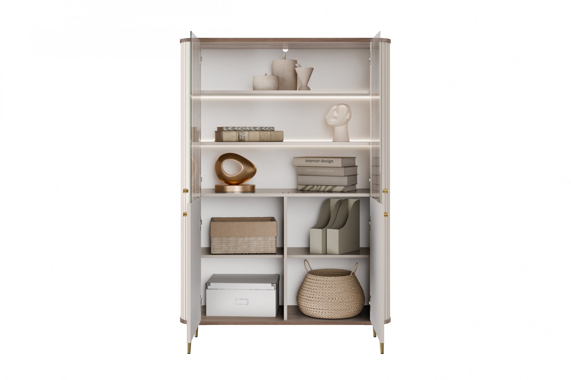 Vesper vitrinekast met LED-verlichting - Modern design | Kleur: Kasjmier/Walnoot/Goud