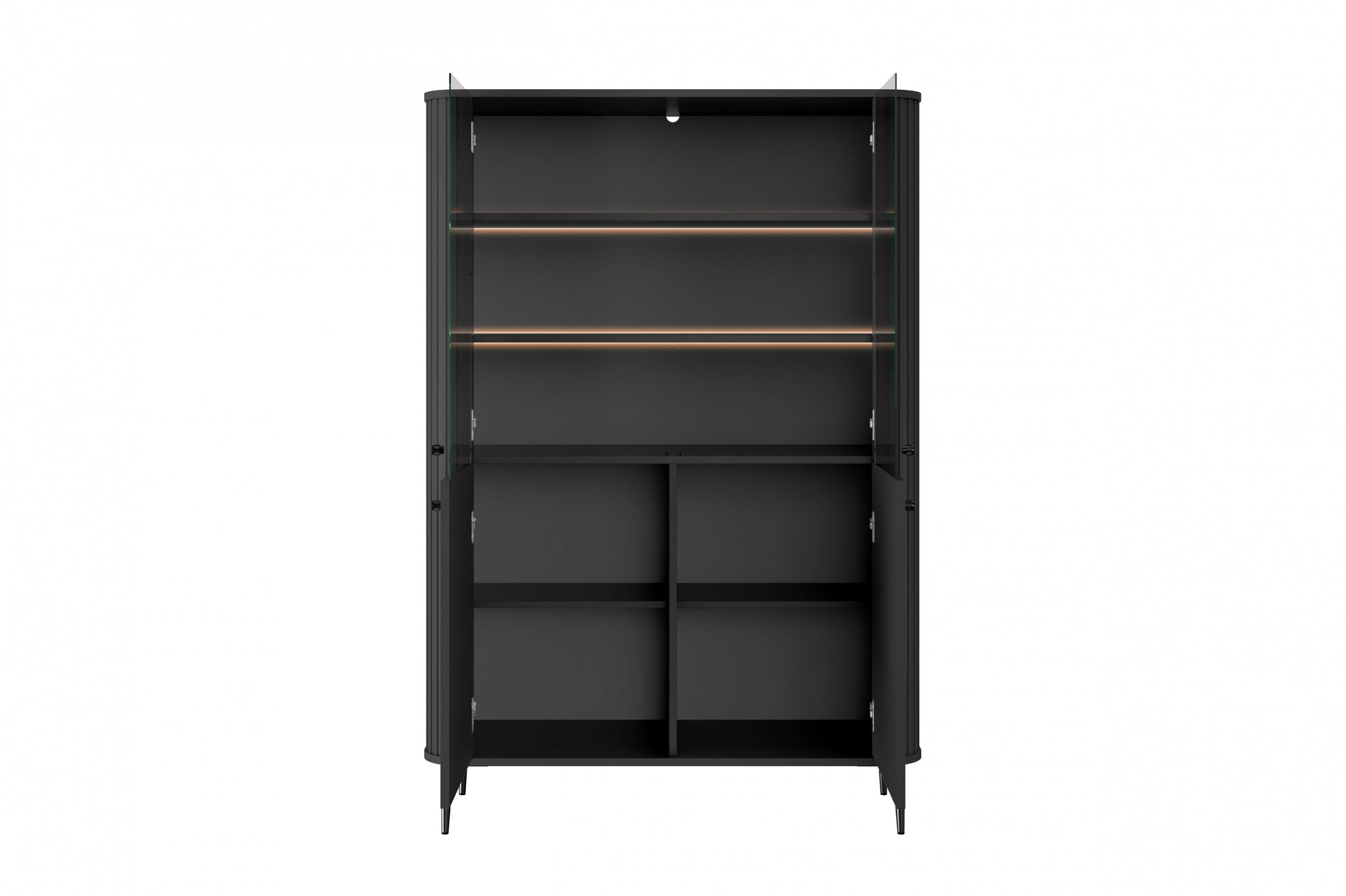 Vesper vitrinekast met verlichting - Woonkamerkast | Kleur: Zwart | Maat: 103x156x38 cm